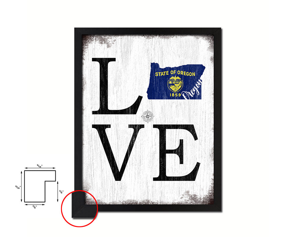 Oregon Shabby Chic Love Sign Wood Framed Paper Print Decor Wall Art Gifts