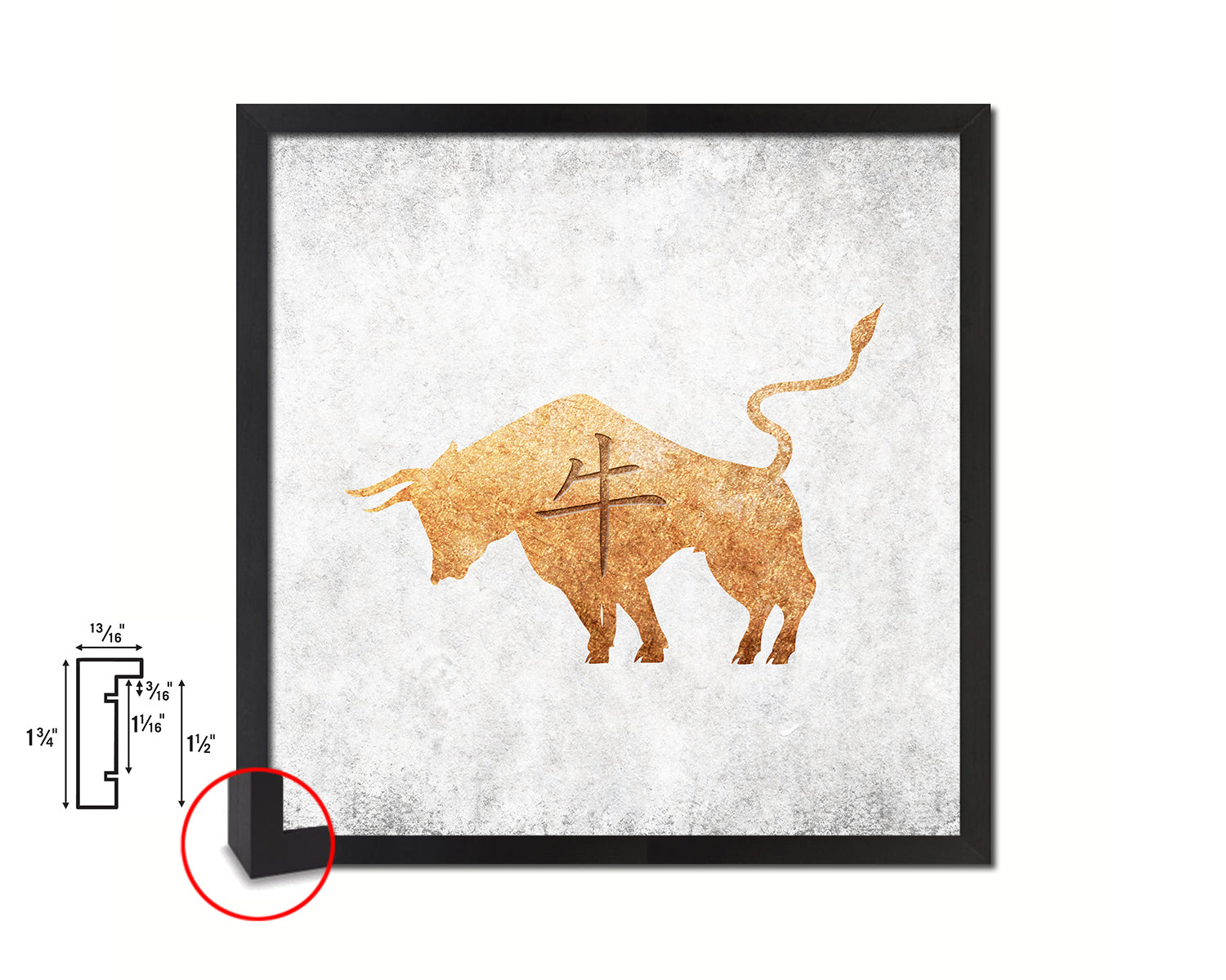 Ox Chinese Zodiac Character Wood Framed Print Wall Art Decor Gifts, White
