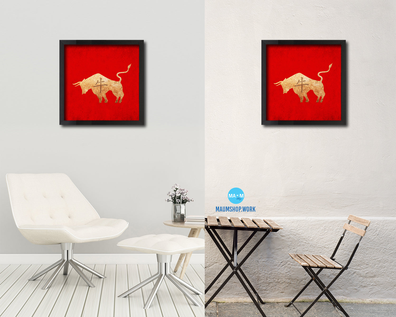 Ox Chinese Zodiac Character Wood Framed Print Wall Art Decor Gifts, Red