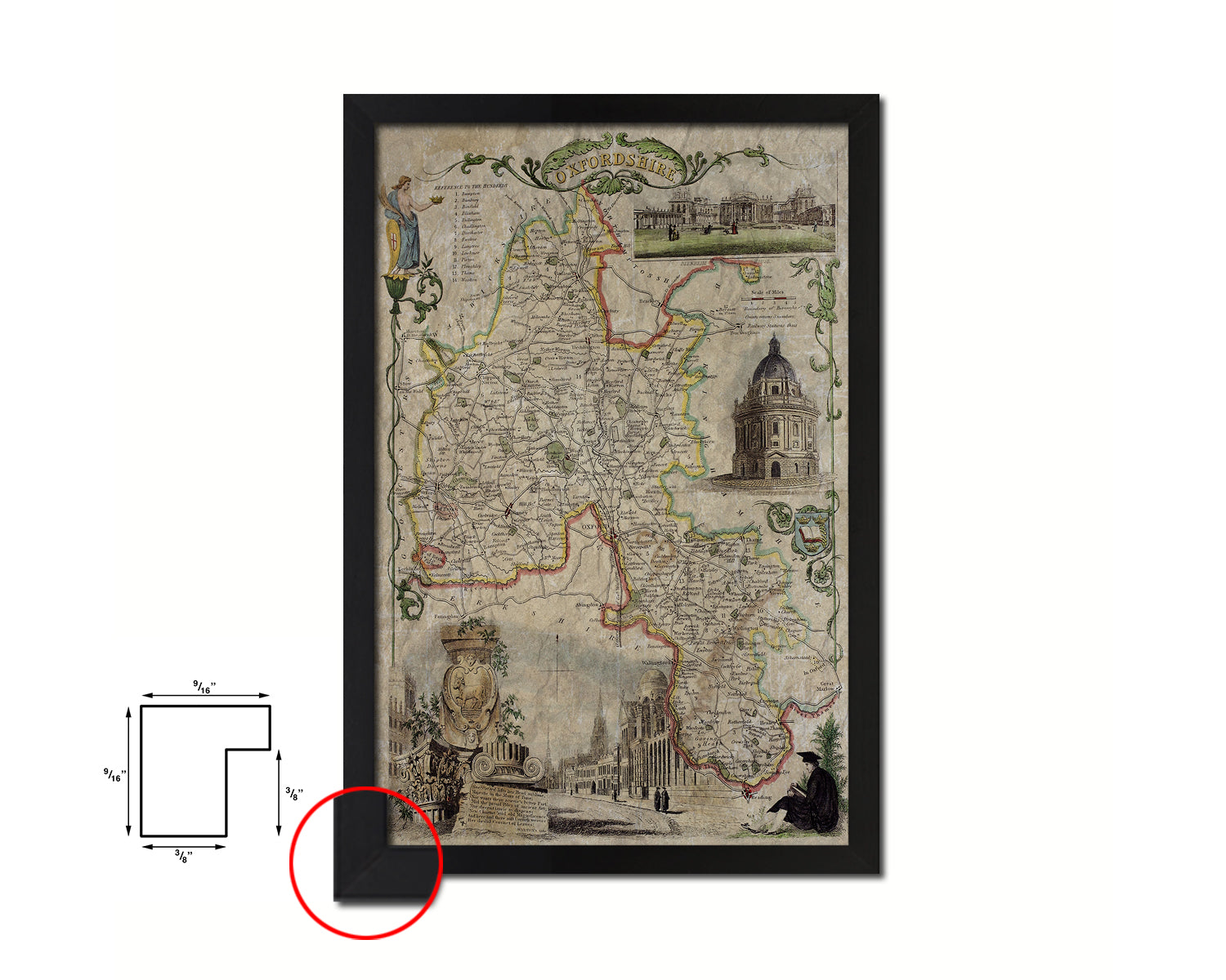 Oxfordshire Historical Map Wood Framed Print Art Wall Decor Gifts