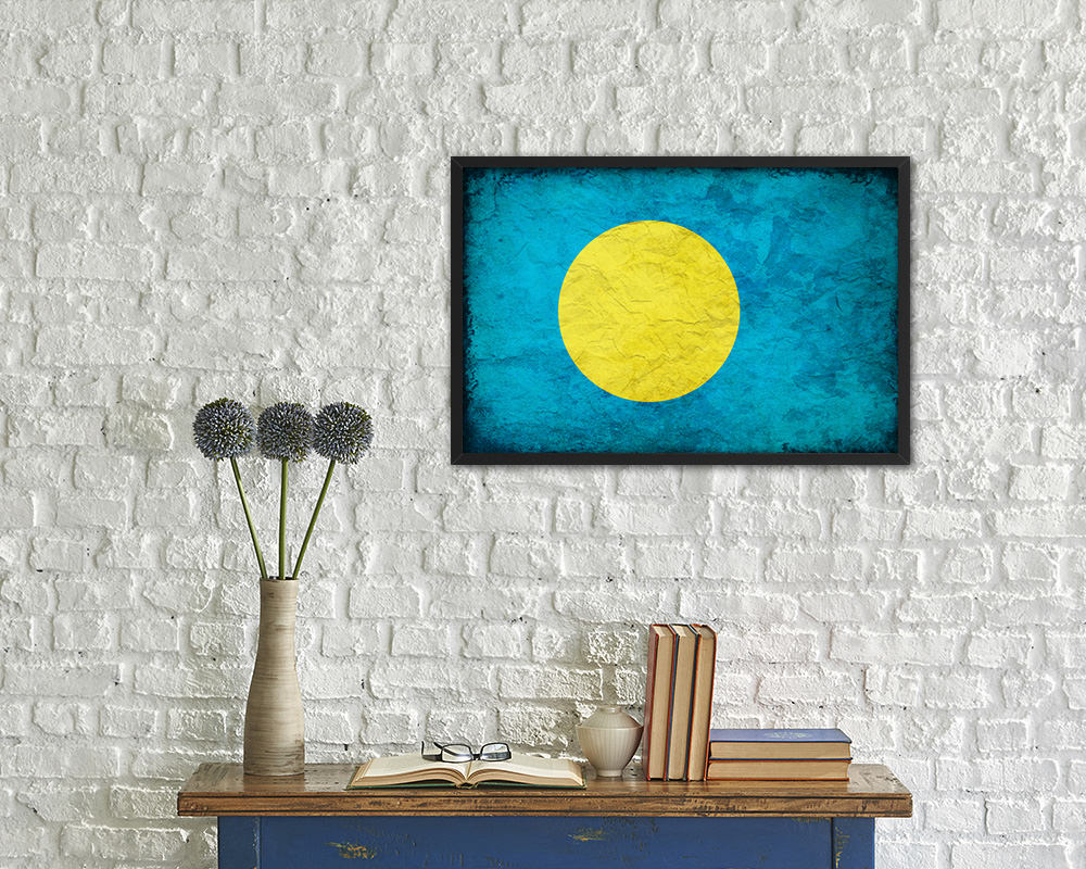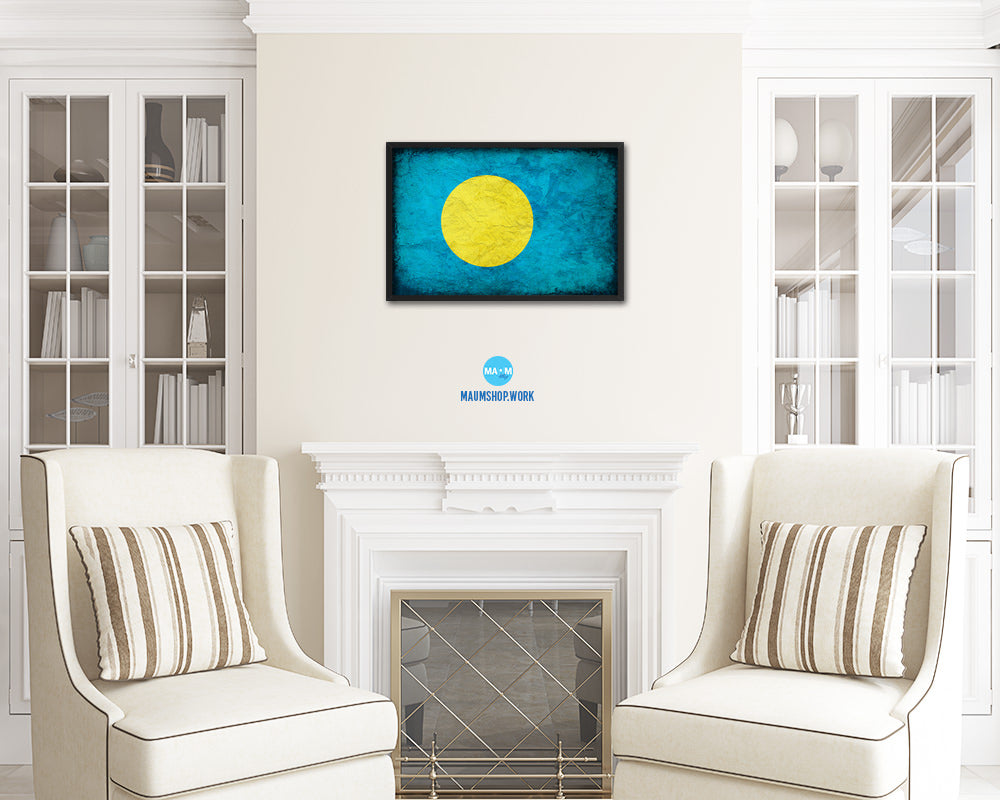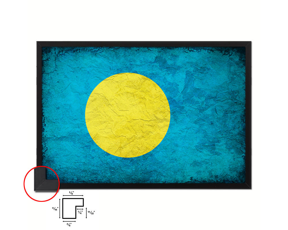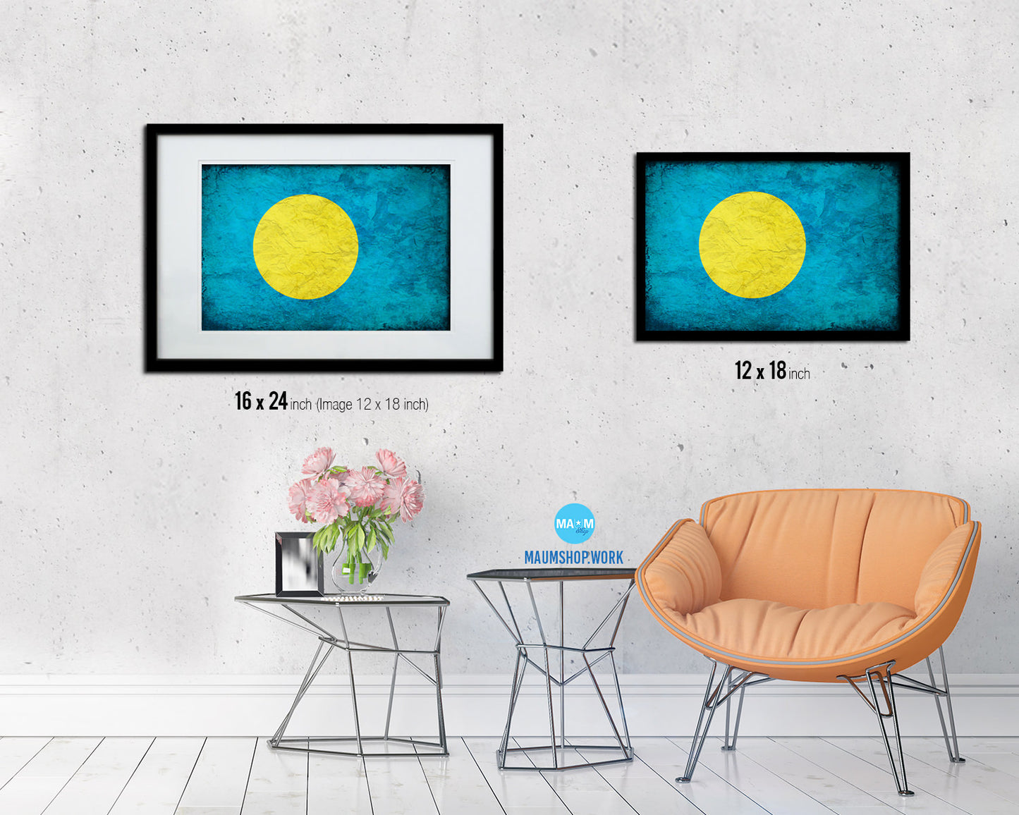 Palau Country Vintage Flag Wood Framed Print Wall Art Decor Gifts
