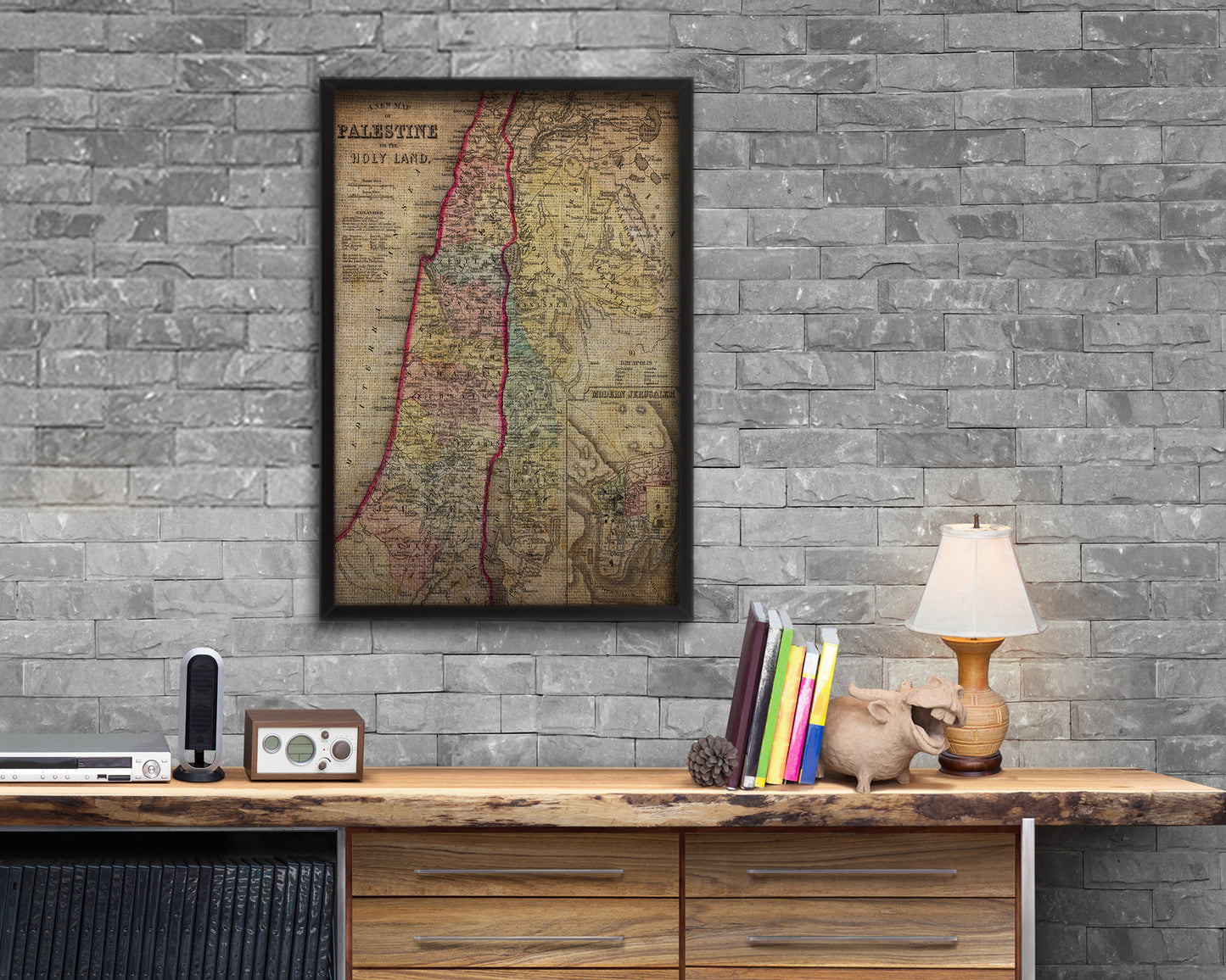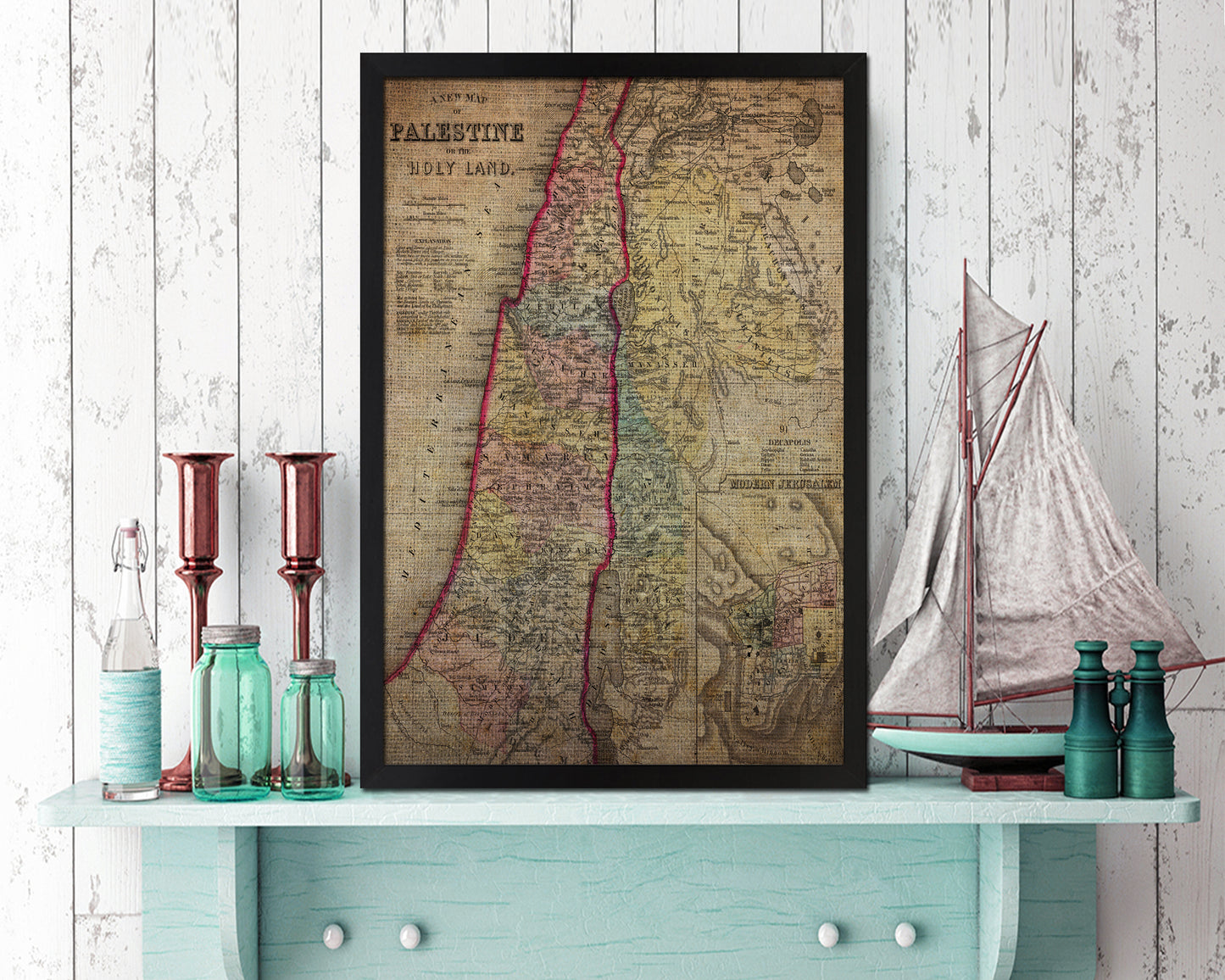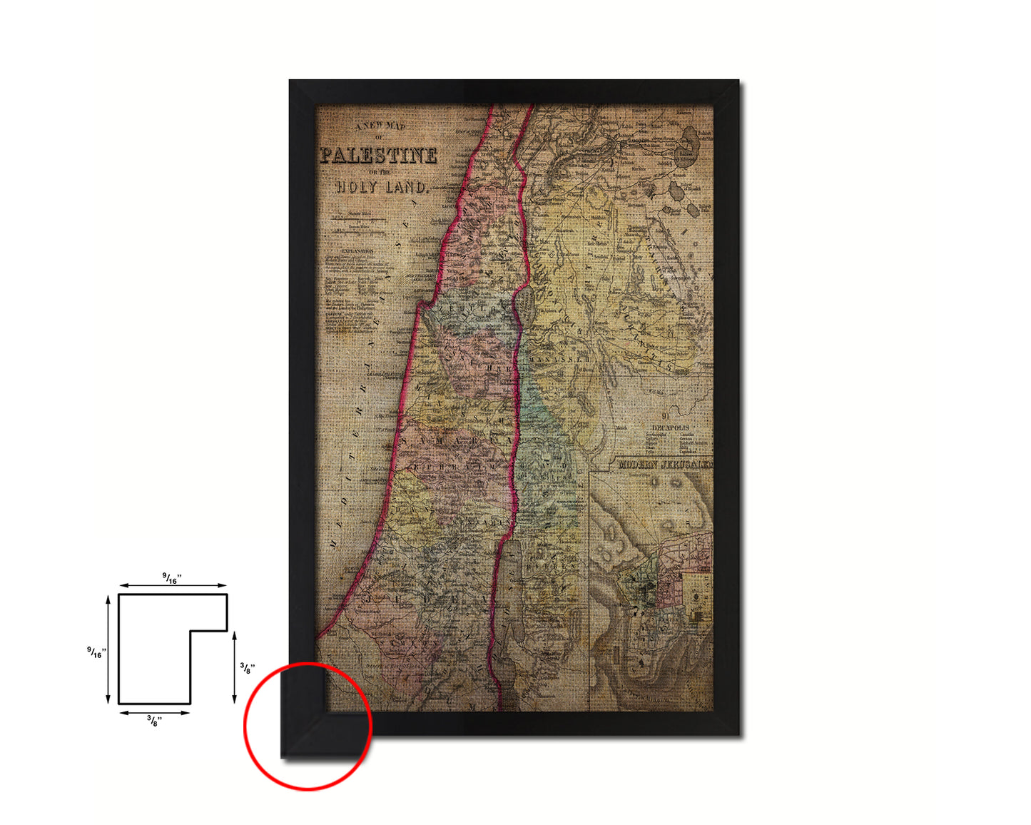 Palestine Israel Jerusalem Vintage Map Wood Framed Print Art Wall Decor Gifts
