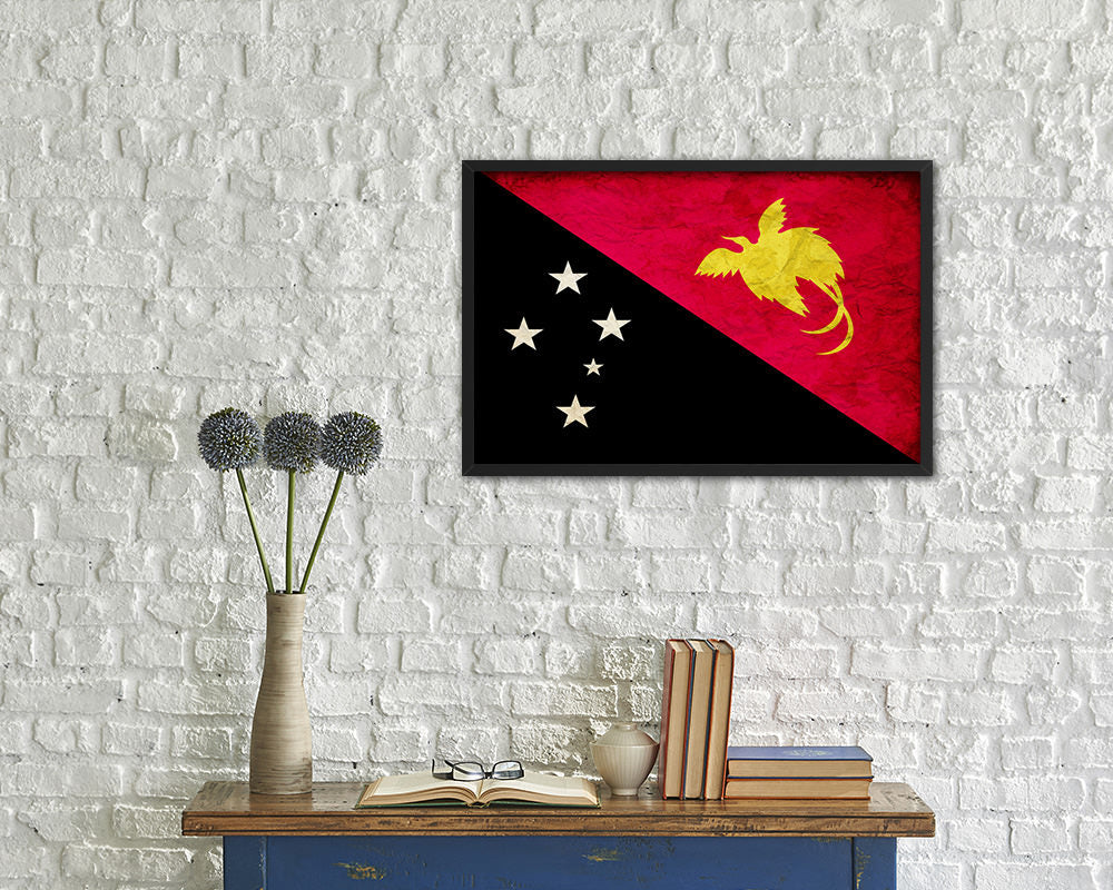 Papua New Guinea Country Vintage Flag Wood Framed Print Wall Art Decor Gifts