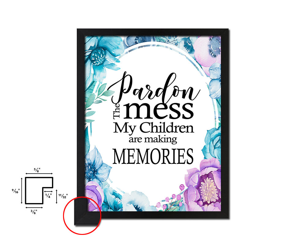 Pardon the mess my children are making Quote Boho Flower Framed Print Wall Decor Art