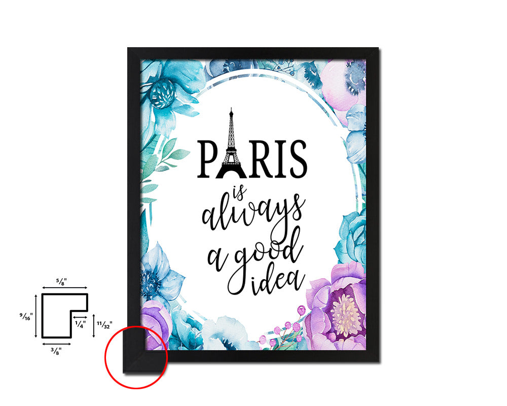 Paris is always g good idea Quote Boho Flower Framed Print Wall Decor Art
