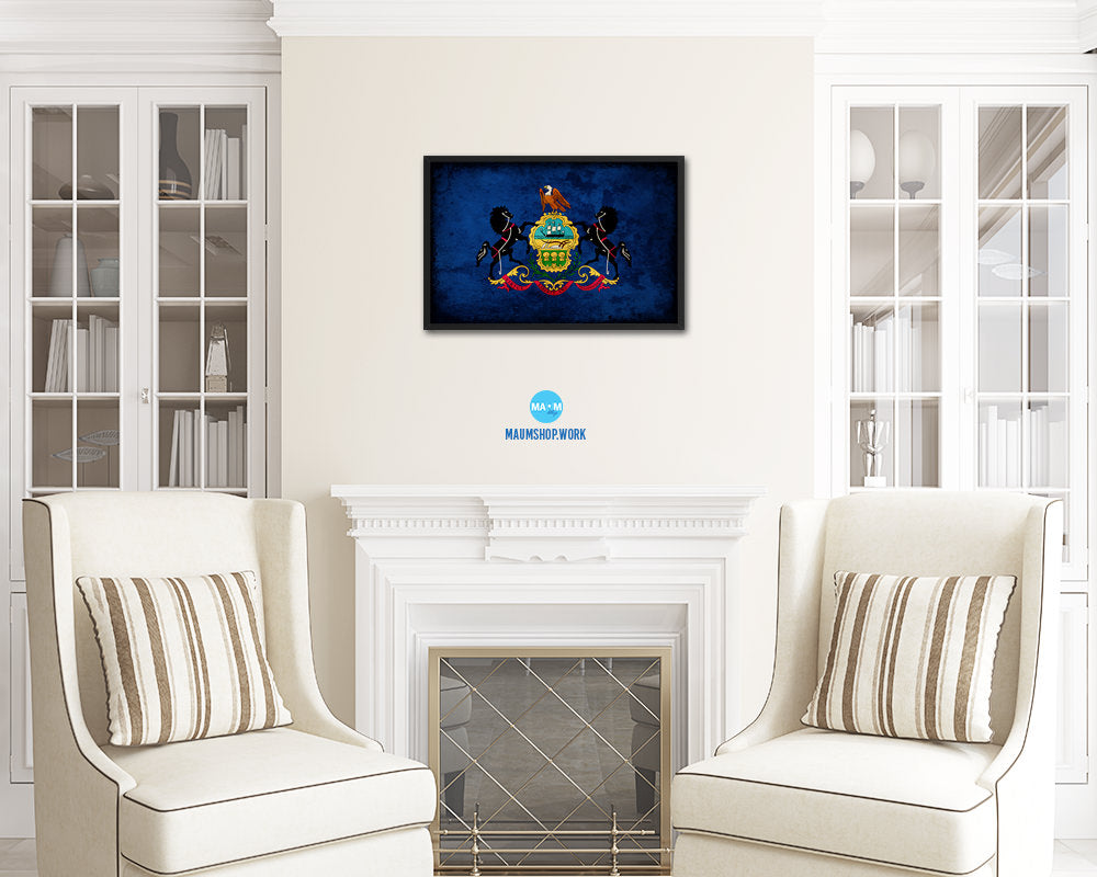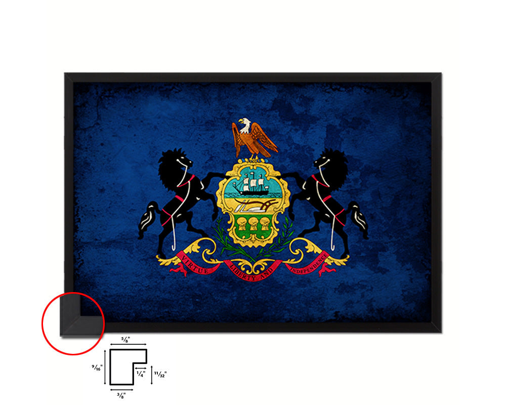 Pennsylvania State Vintage Flag Wood Framed Paper Print Wall Art Decor Gifts
