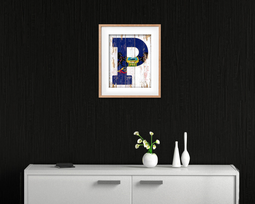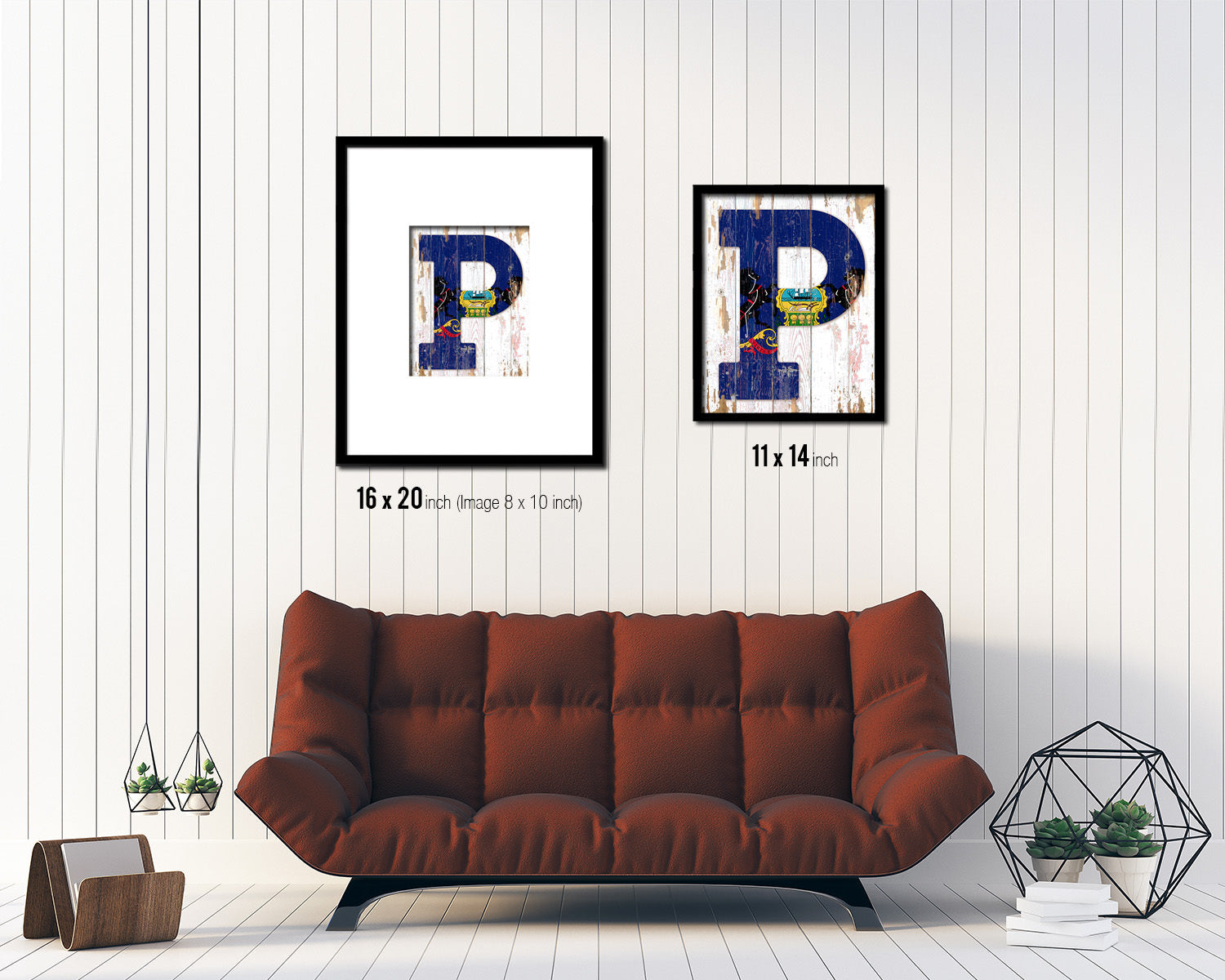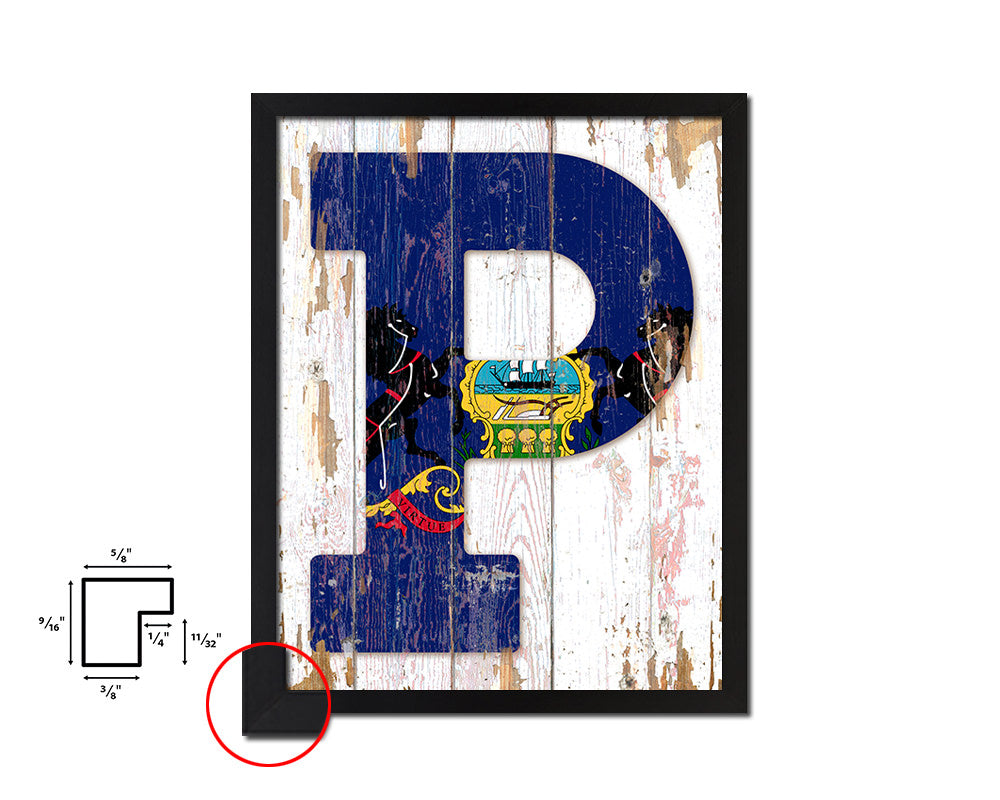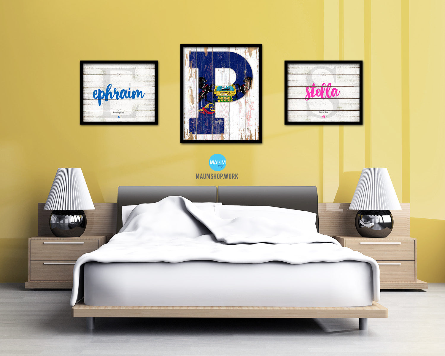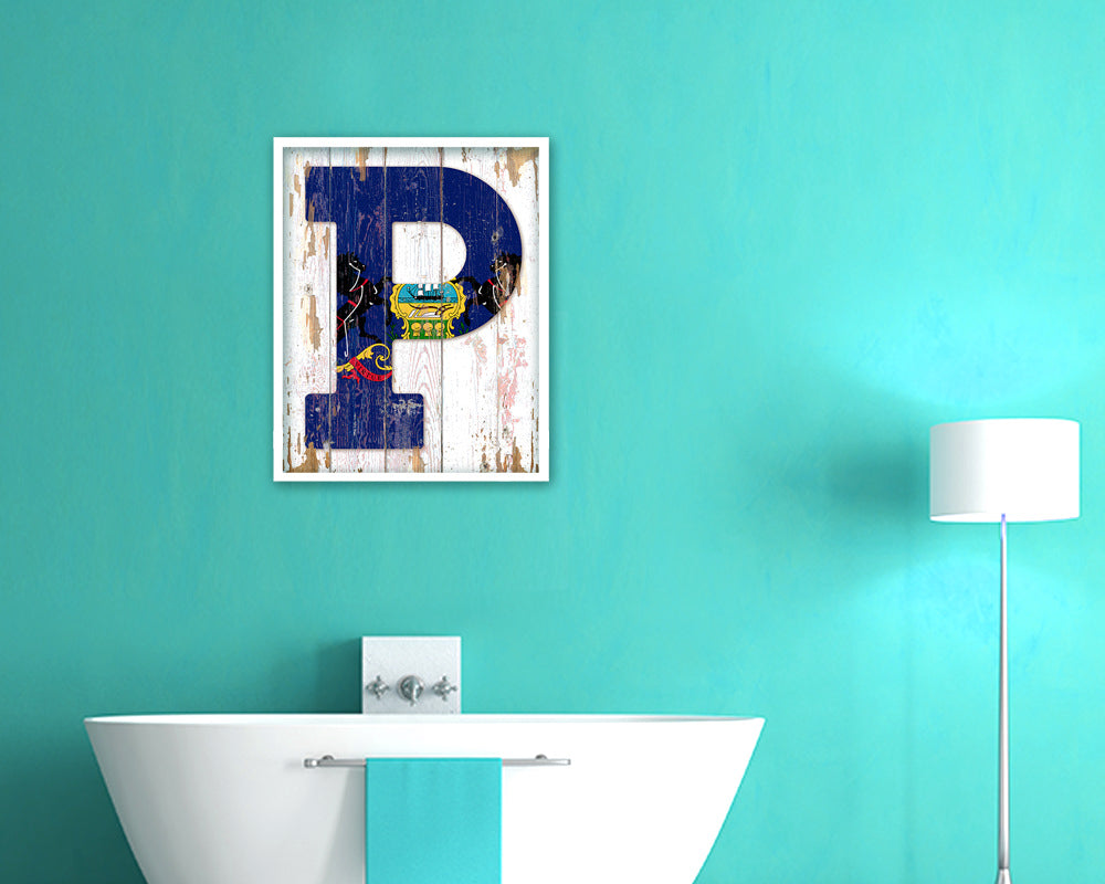 Pennsylvania State Initial Flag Wood Framed Paper Print Decor Wall Art Gifts, Beach