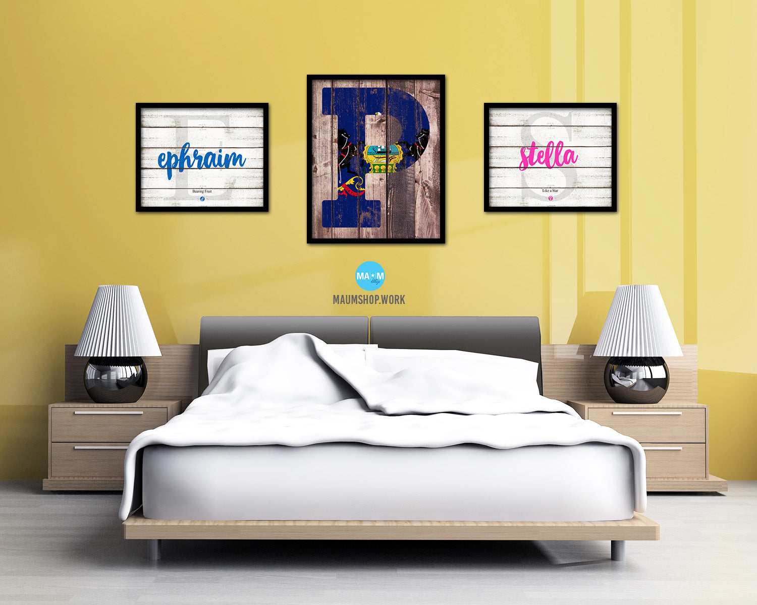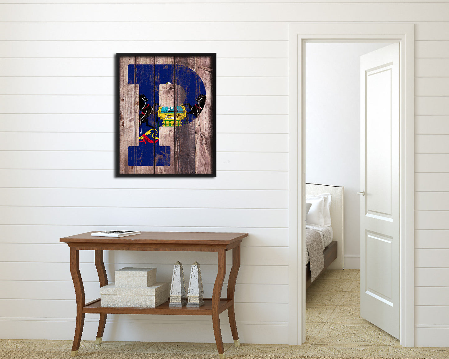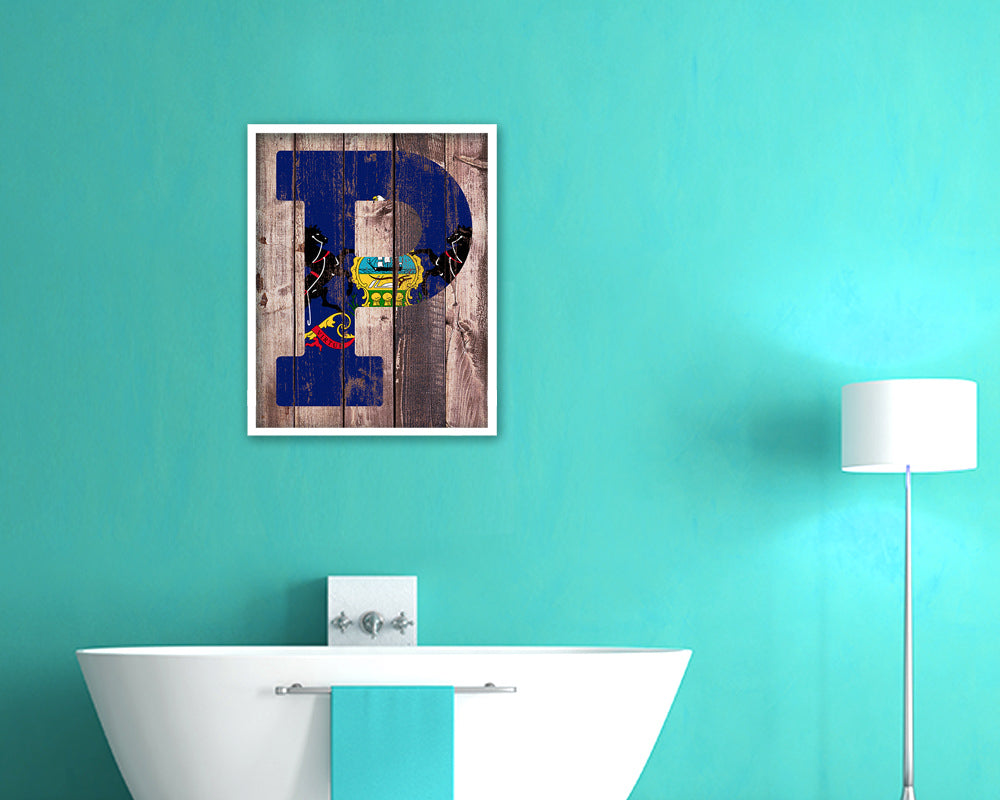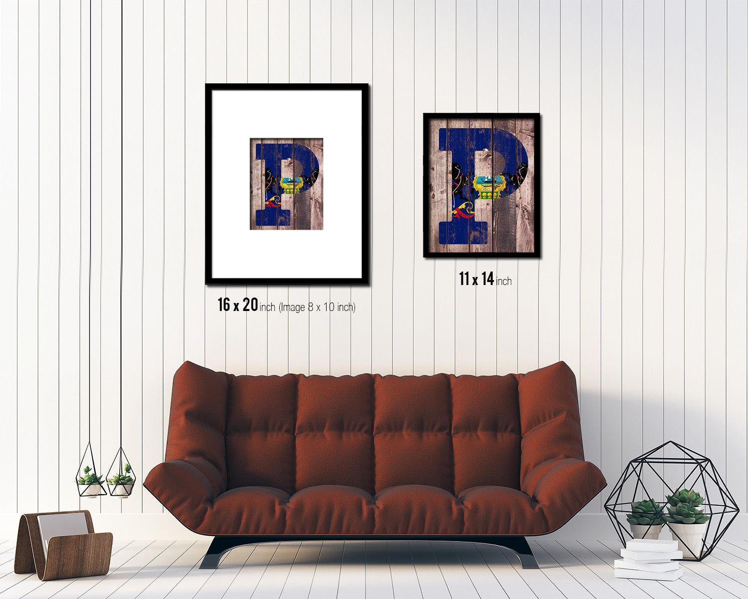 Pennsylvania State Initial Flag Wood Framed Paper Print Decor Wall Art Gifts, Wood