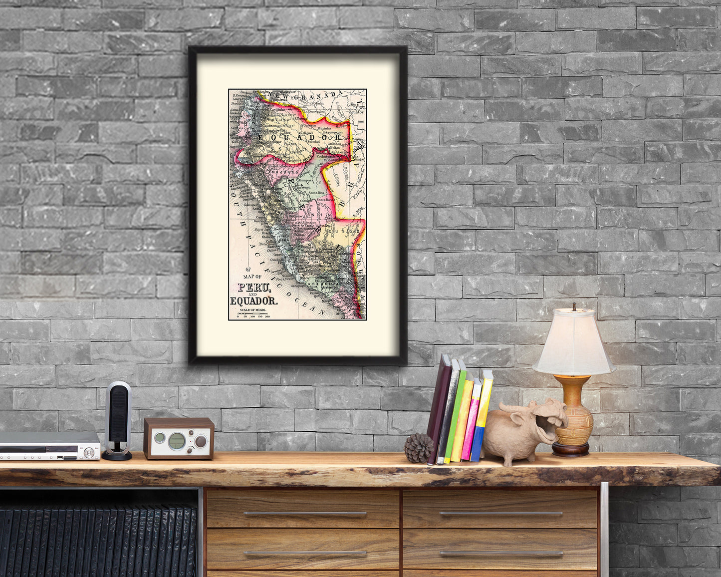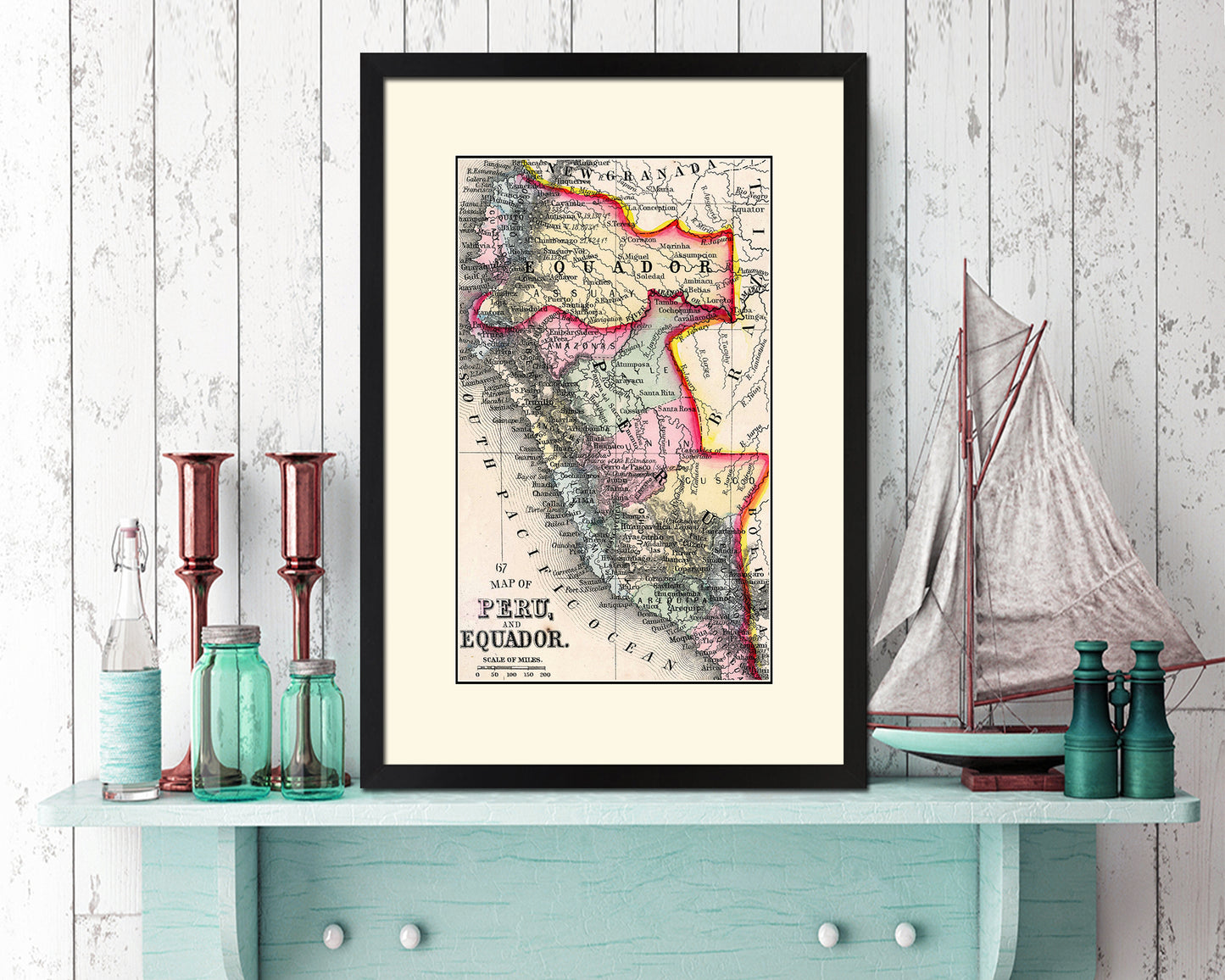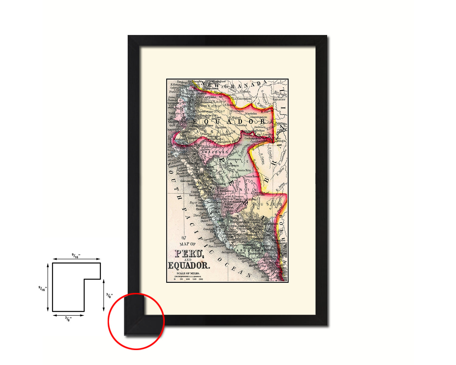 Peru Old Map Wood Framed Print Art Wall Decor Gifts