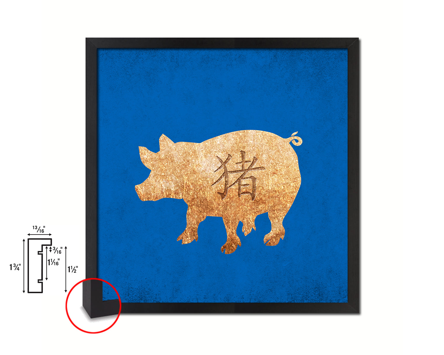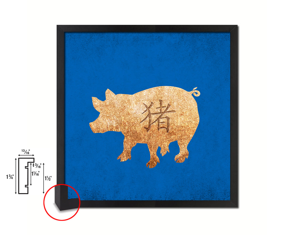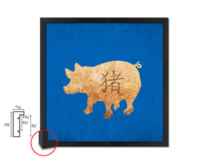 Pig Chinese Zodiac Character Wood Framed Print Wall Art Decor Gifts, Blue