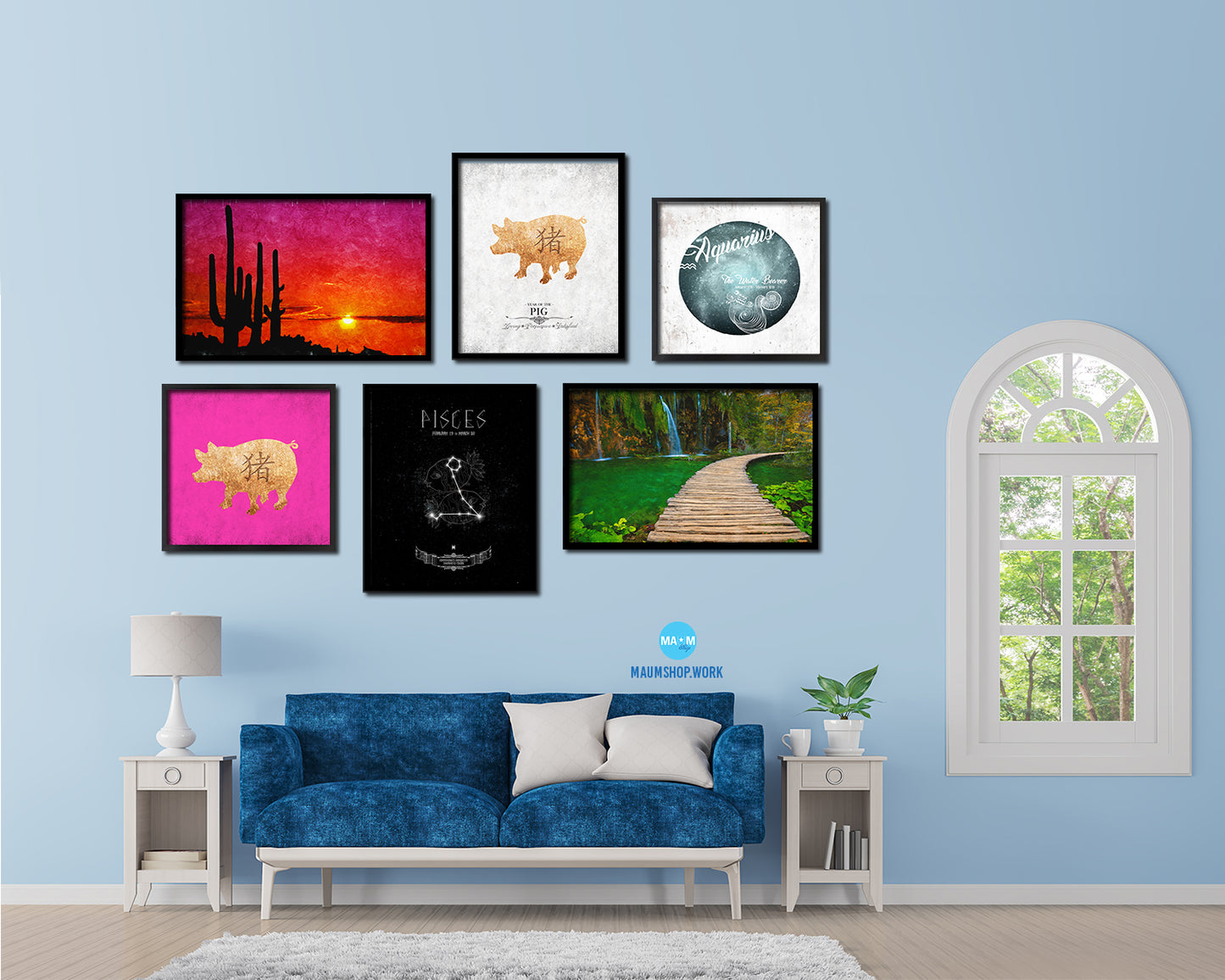 Pisces Astrology Prediction Yearly Horoscope Wood Framed Paper Print Wall Art Decor Gifts