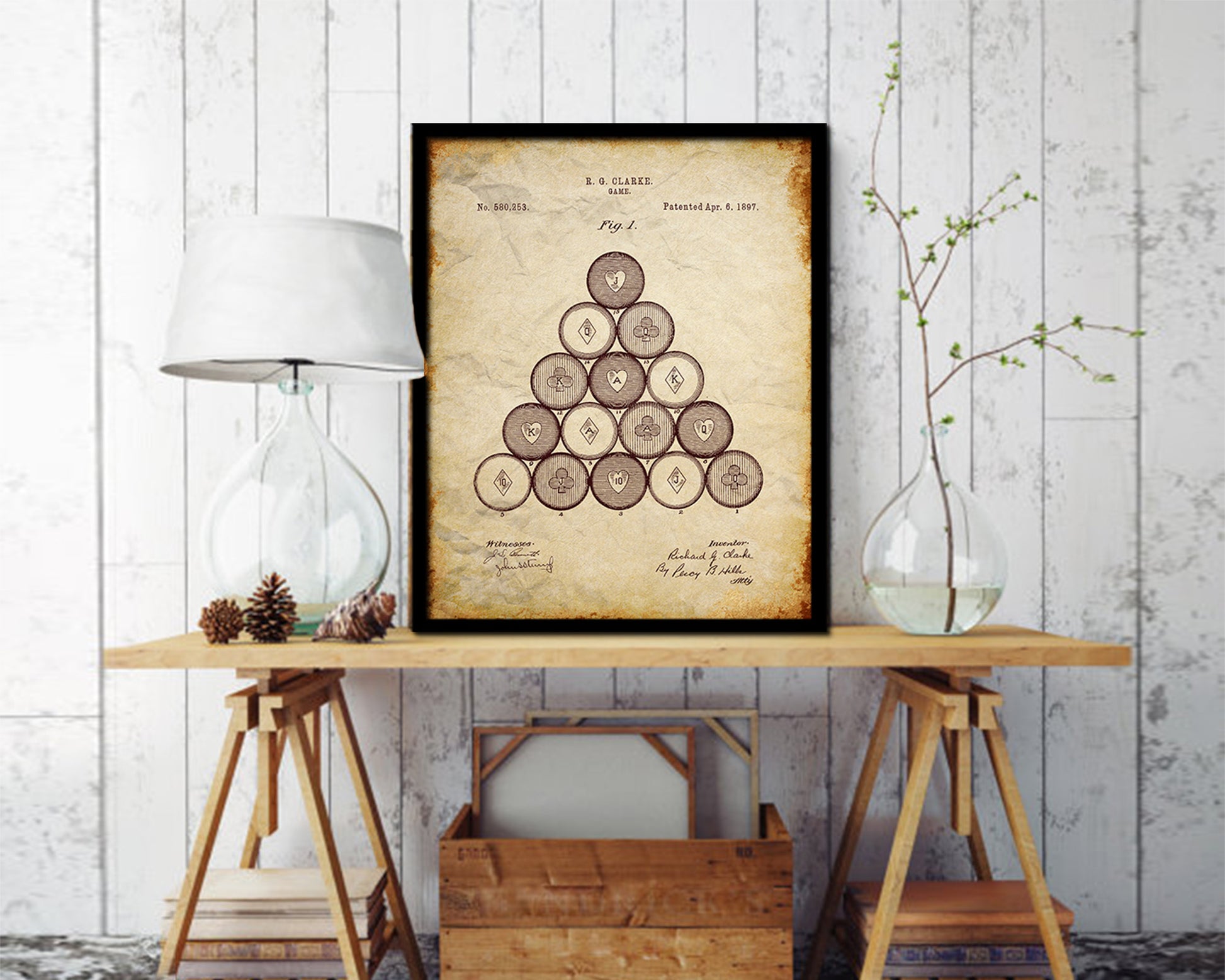Billiard Pool Poker Game Playing Card Vintage Patent Artwork Walnut Frame Gifts