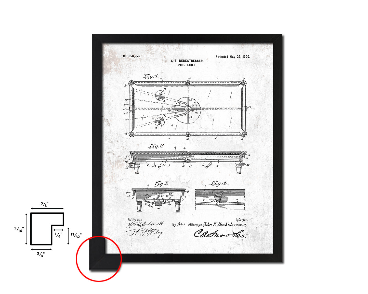 Billiards Pool Table Playing Card Vintage Patent Artwork Black Frame Print Gifts