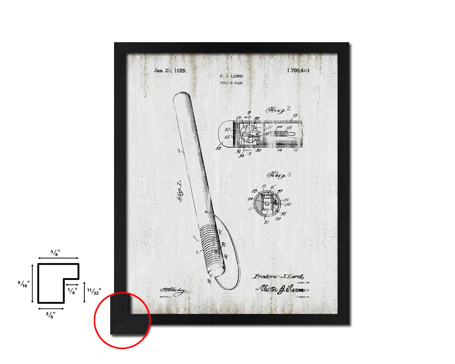 Club Police Vintage Patent Artwork Black Frame Print Wall Art Decor Gifts