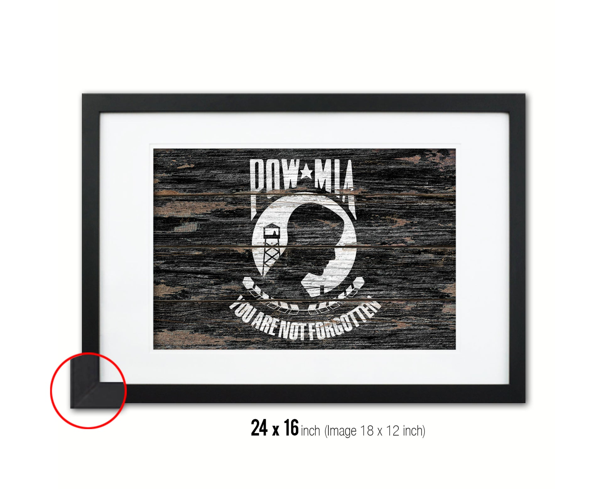 Pow Mia Wood Rustic Flag Wood Framed Print Wall Art Decor Gifts