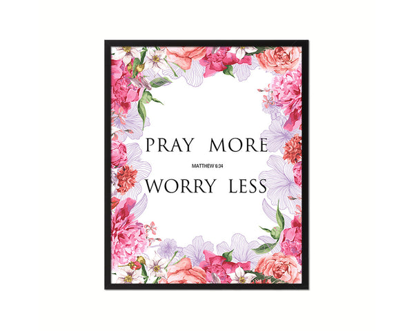 Pray more Worry less, Matthew 6:34 Quote Framed Print Home Decor Wall Art Gifts