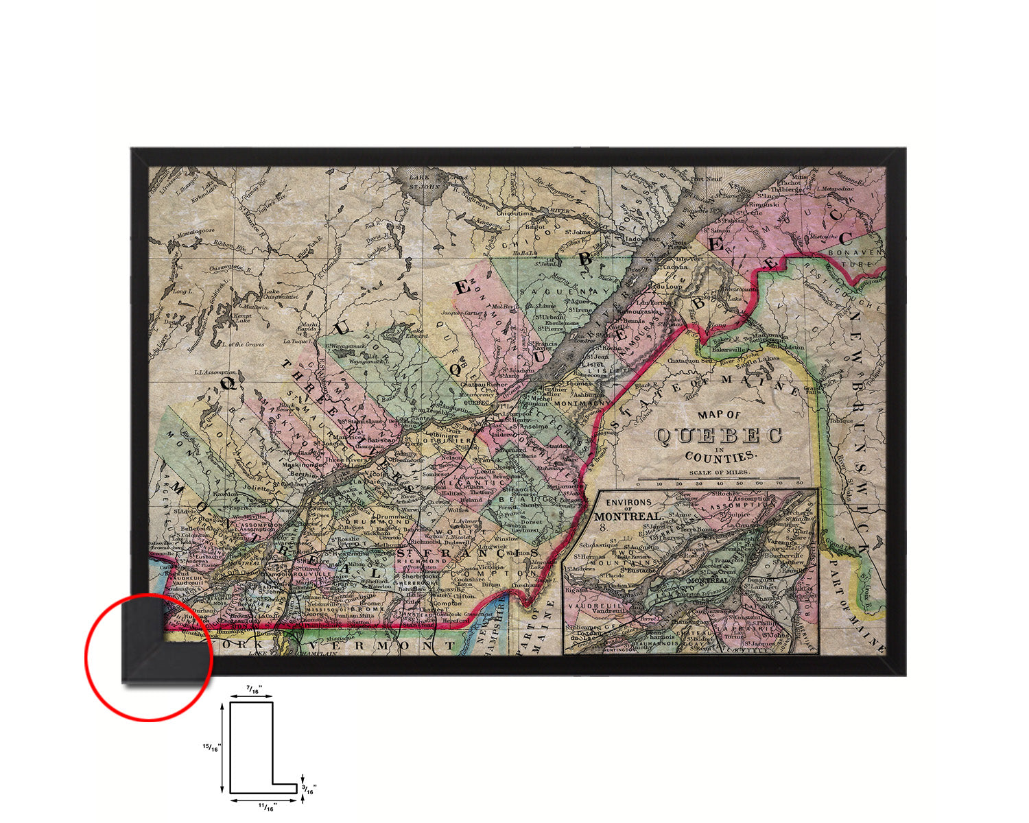 Quebec Montreal Historical Map Framed Print Art Wall Decor Gifts