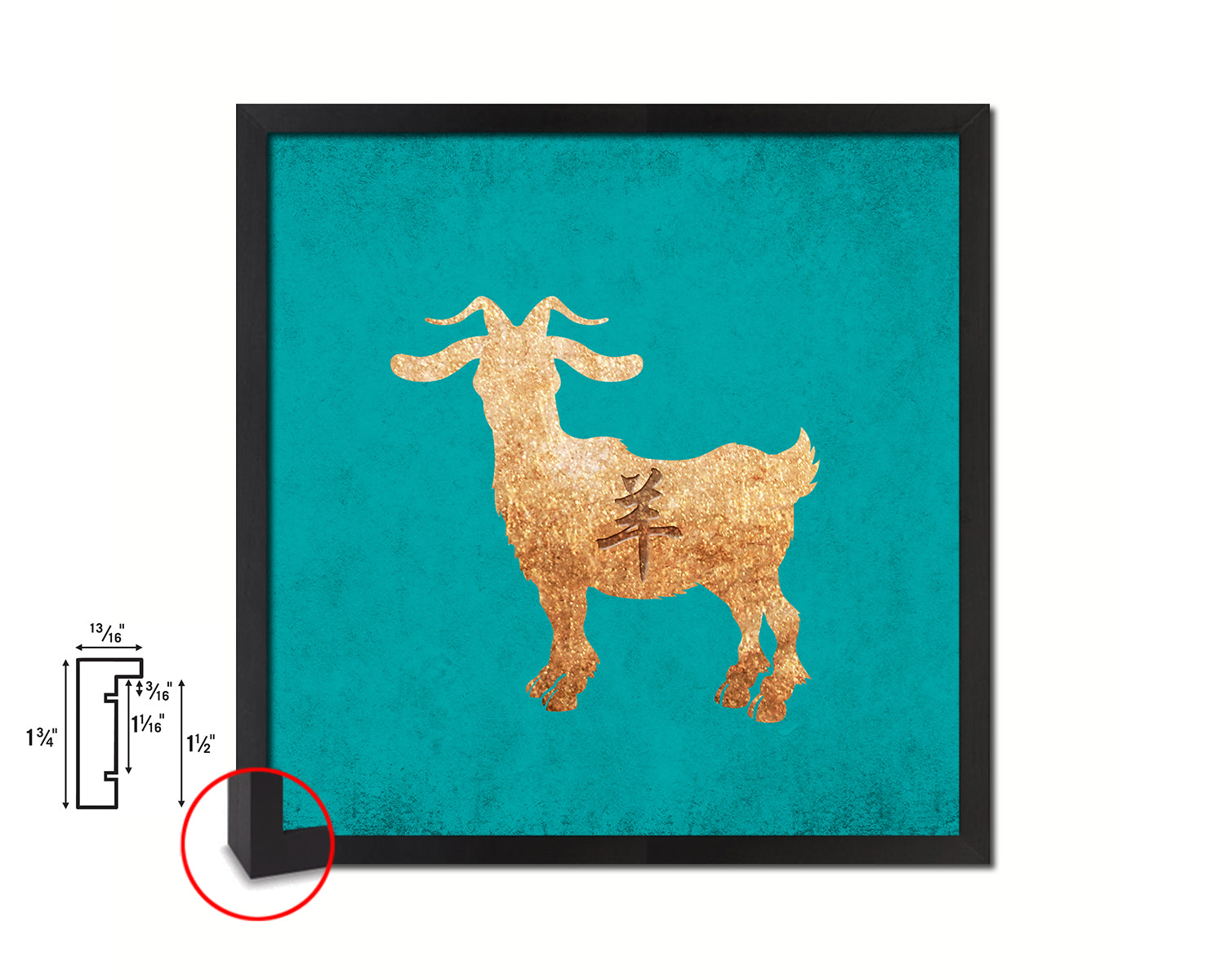 Ram Chinese Zodiac Character Wood Framed Print Wall Art Decor Gifts, Aqua