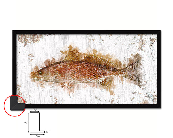 Red Drum Fish Art Wood Frame Shabby Chic Restaurant Sushi Wall Decor Gifts, 10" x 20"
