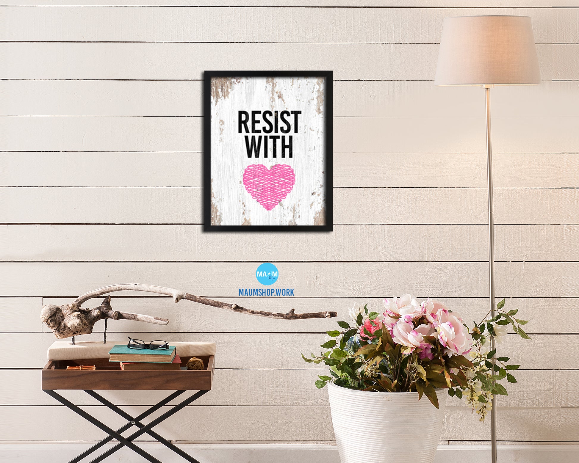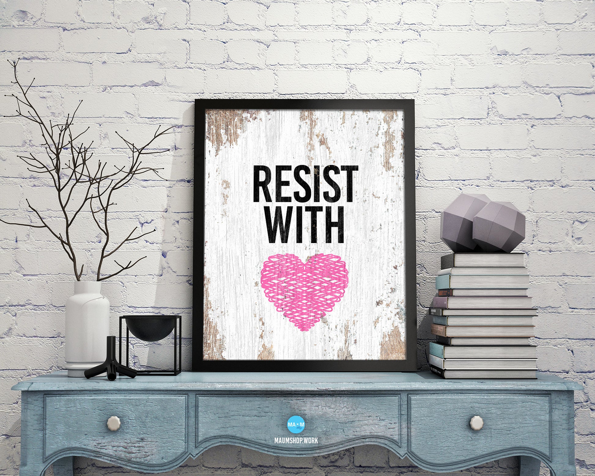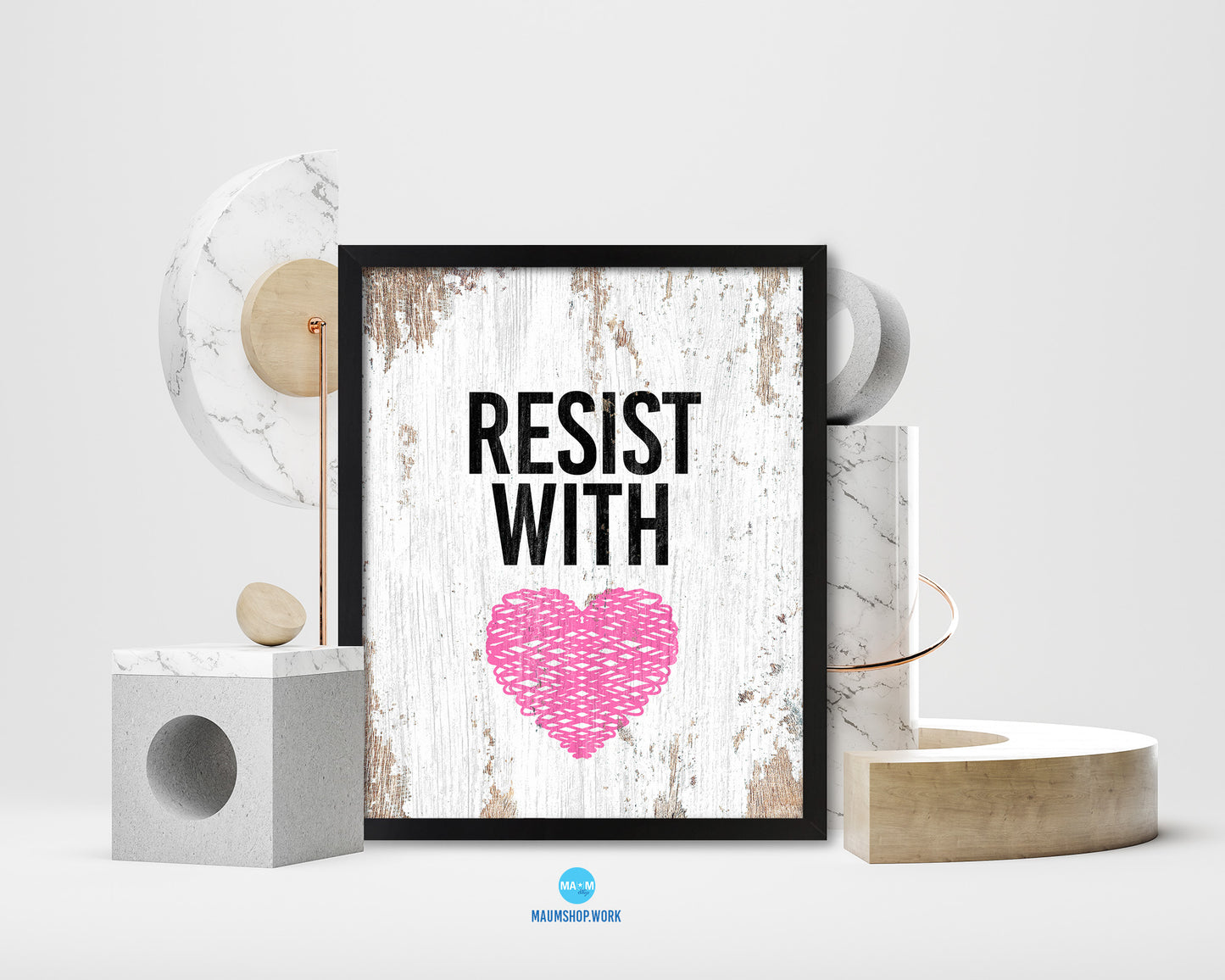 Resist With Love Rainbow Pride Peace Right Justice Poster Wood Framed Wall Decor Print Gifts