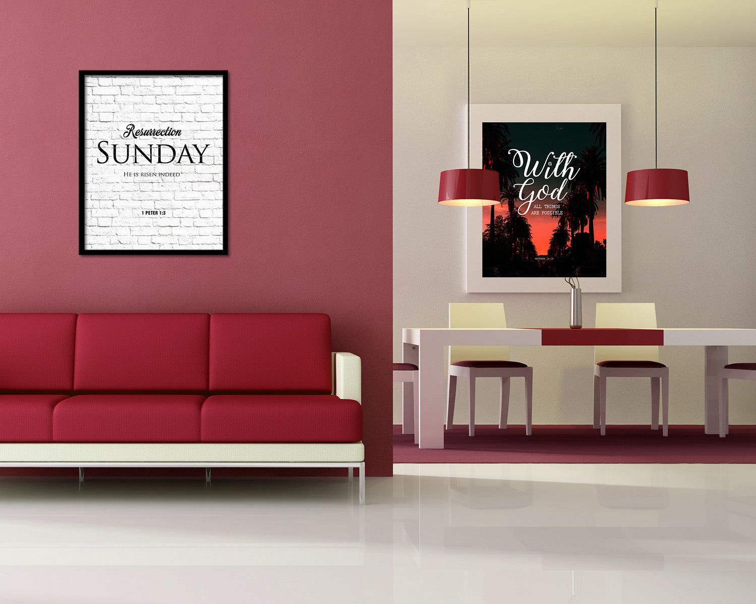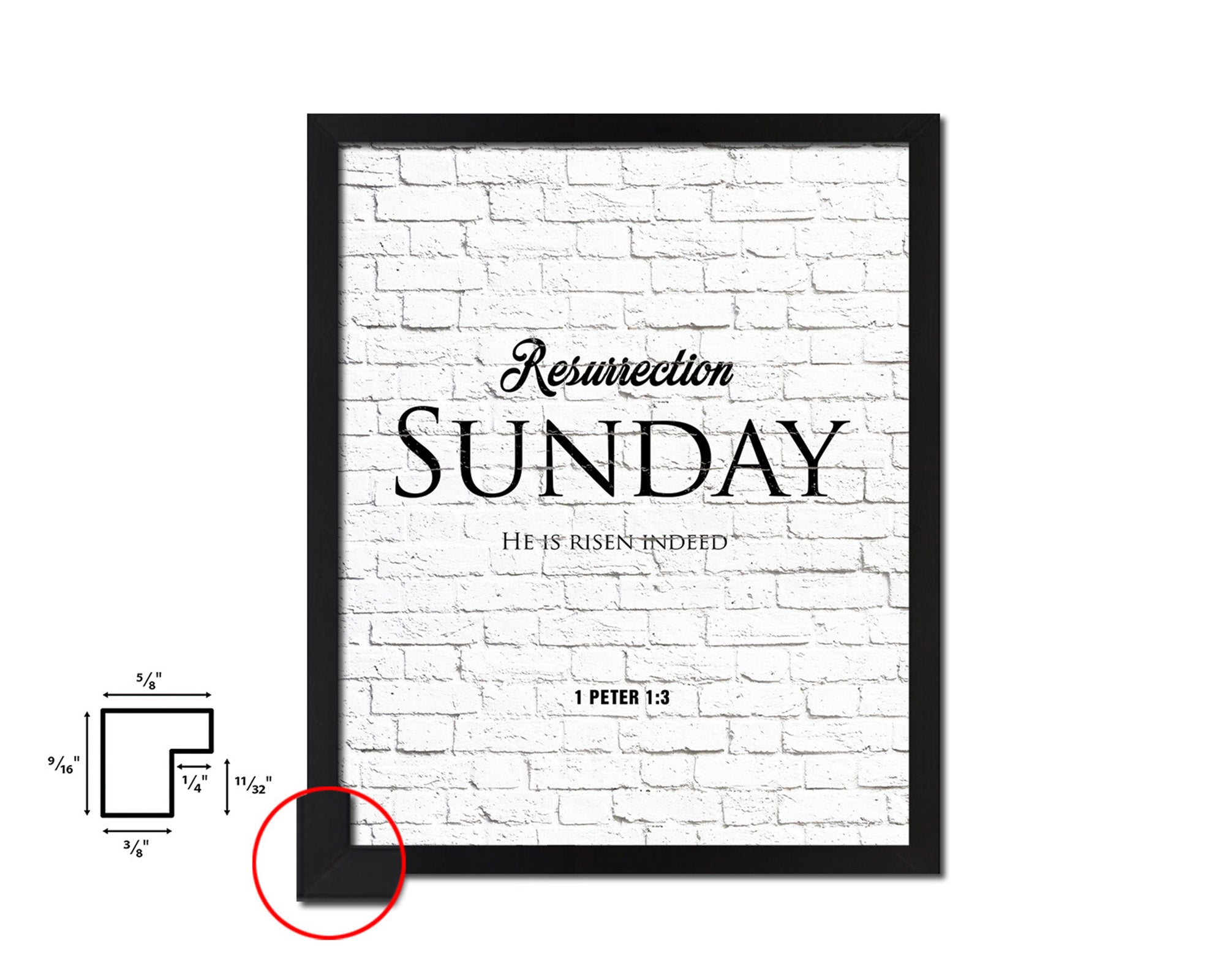 Resurrection Sunday He is risen indeed, 1 Peter 1:3 Quote Framed Print Home Decor Wall Art Gifts