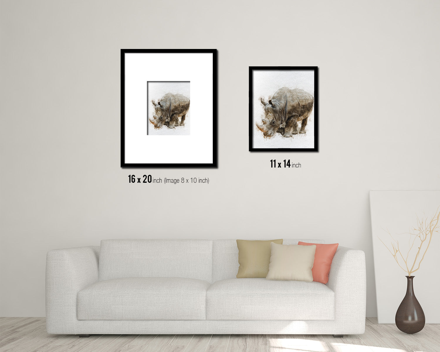Rhinoceros Animal Painting Print Framed Art Home Wall Decor Gifts