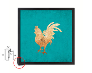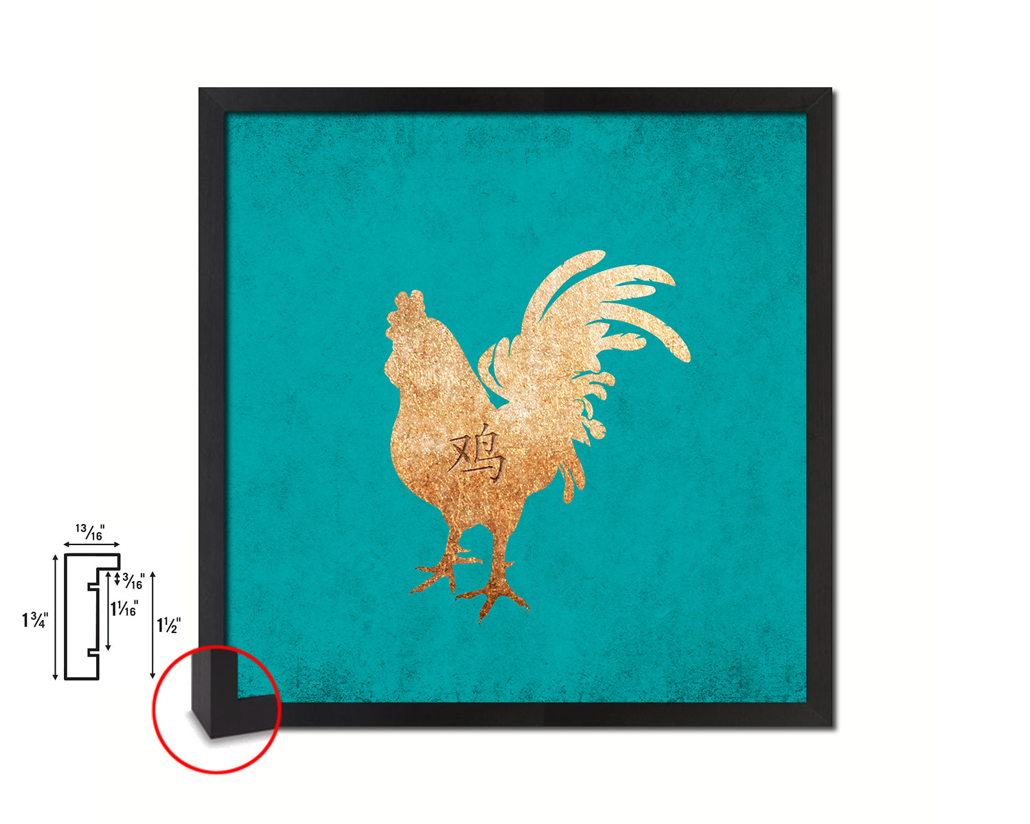 Rooster Chinese Zodiac Character Wood Framed Print Wall Art Decor Gifts, Aqua