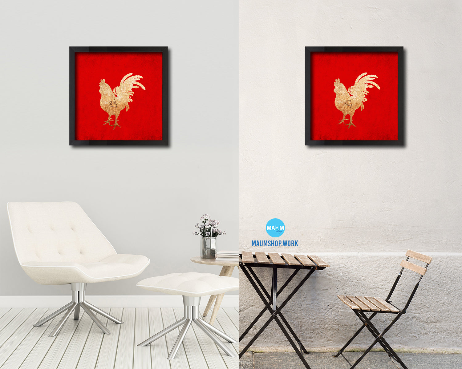 Rooster Chinese Zodiac Character Wood Framed Print Wall Art Decor Gifts, Red