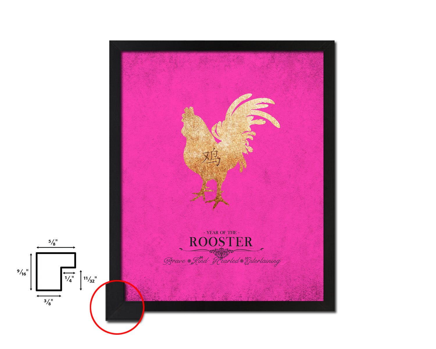 Rooster Chinese Zodiac Character Black Framed Art Paper Print Wall Art Decor Gifts, Pink