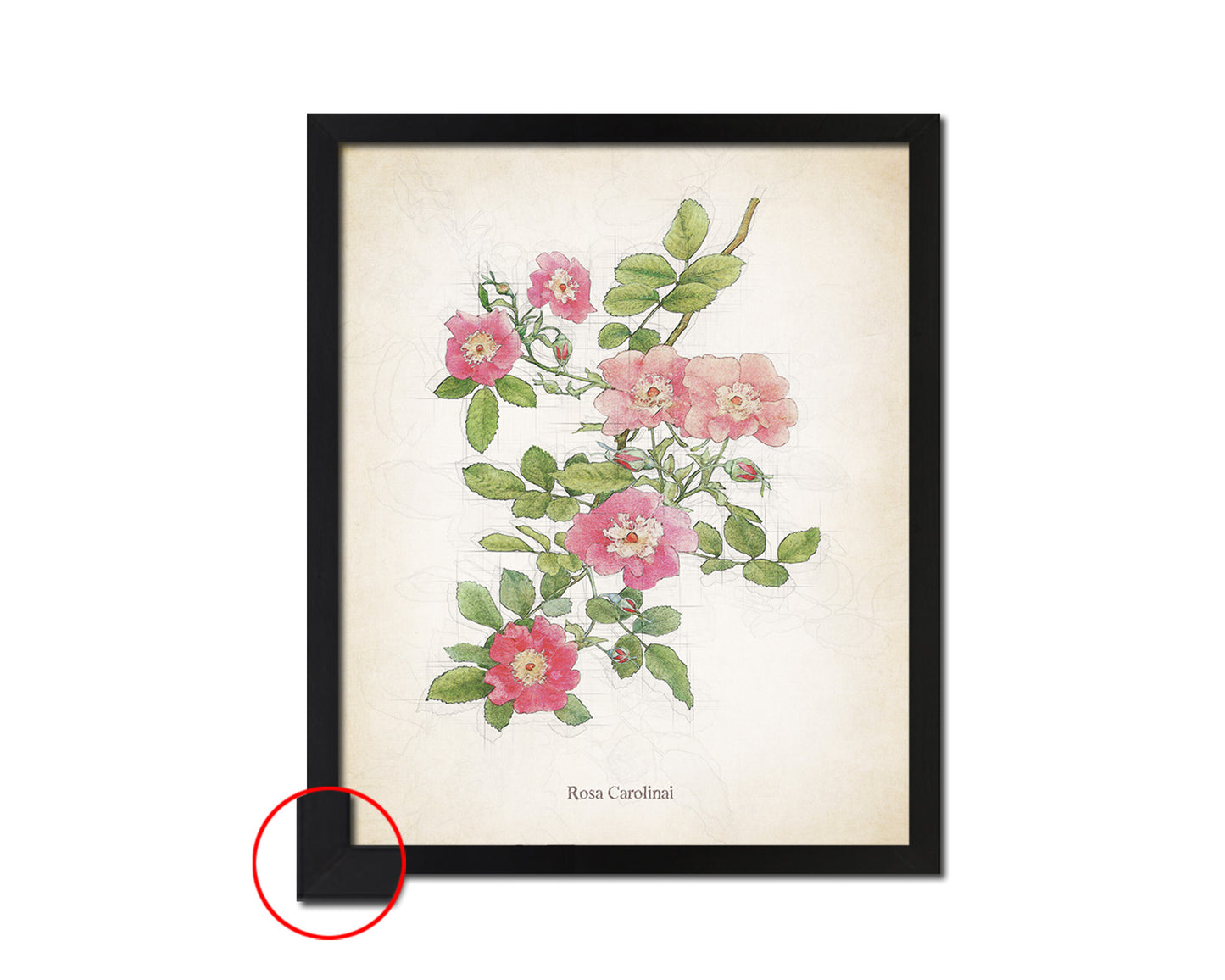 Carolinai Vintage Botanical Rose Flower Art Wood Framed Print Wall Decor Gifts