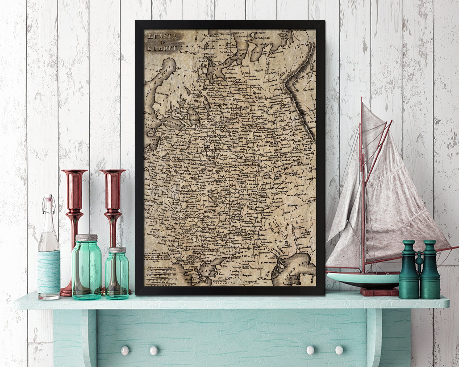 Russia Scandinavia Historical Map Wood Framed Print Art Wall Decor Gifts