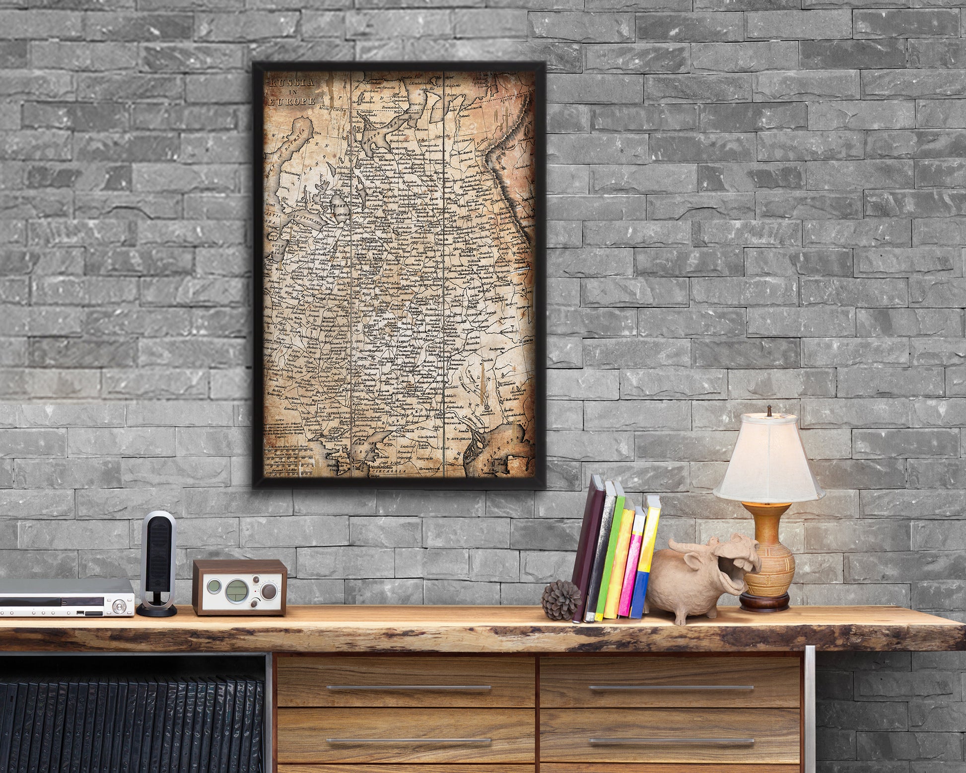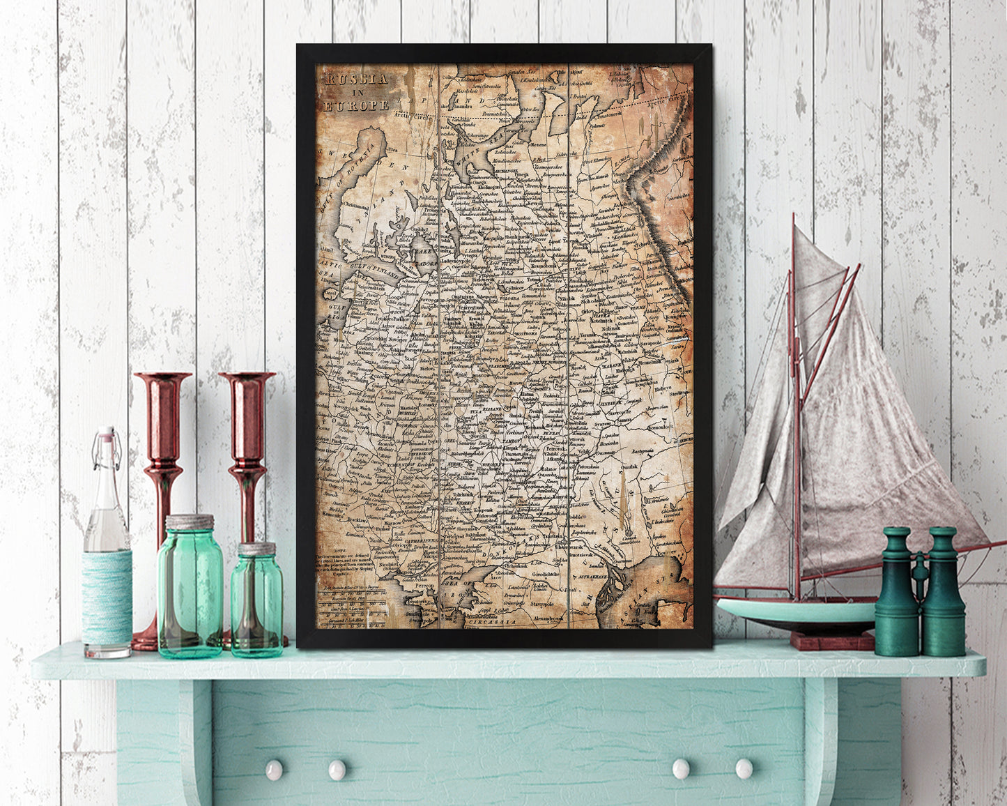 Russia Scandinavia Antique Map Wood Framed Print Art Wall Decor Gifts