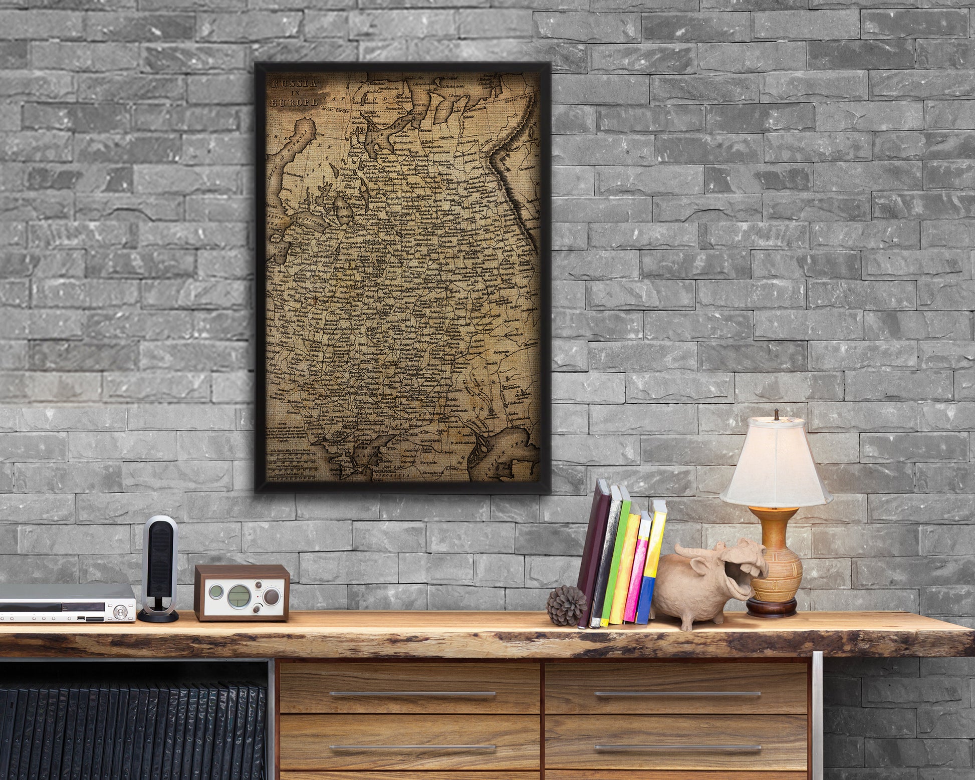 Russia Scandinavia Vintage Map Wood Framed Print Art Wall Decor Gifts