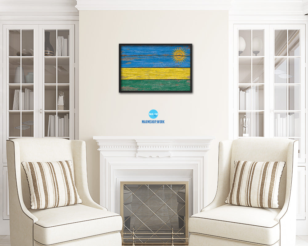 Rwanda Country Wood Rustic National Flag Wood Framed Print Wall Art Decor Gifts