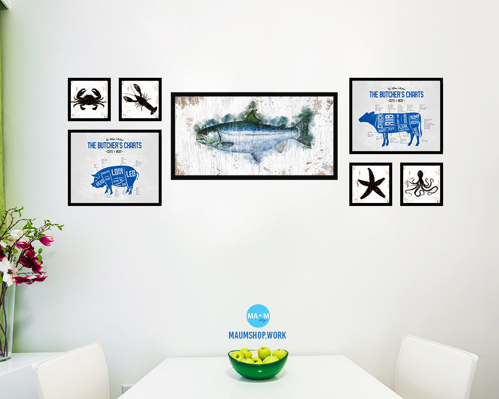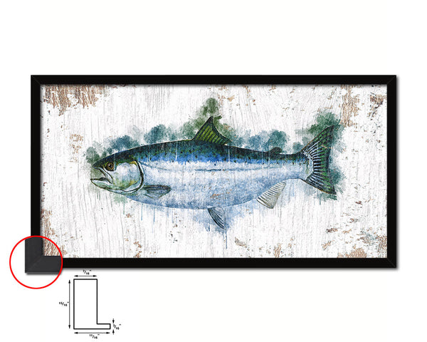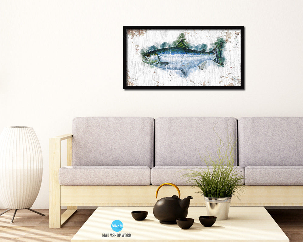 Salmon Fish Art Wood Frame Shabby Chic Restaurant Sushi Wall Decor Gifts, 10" x 20"