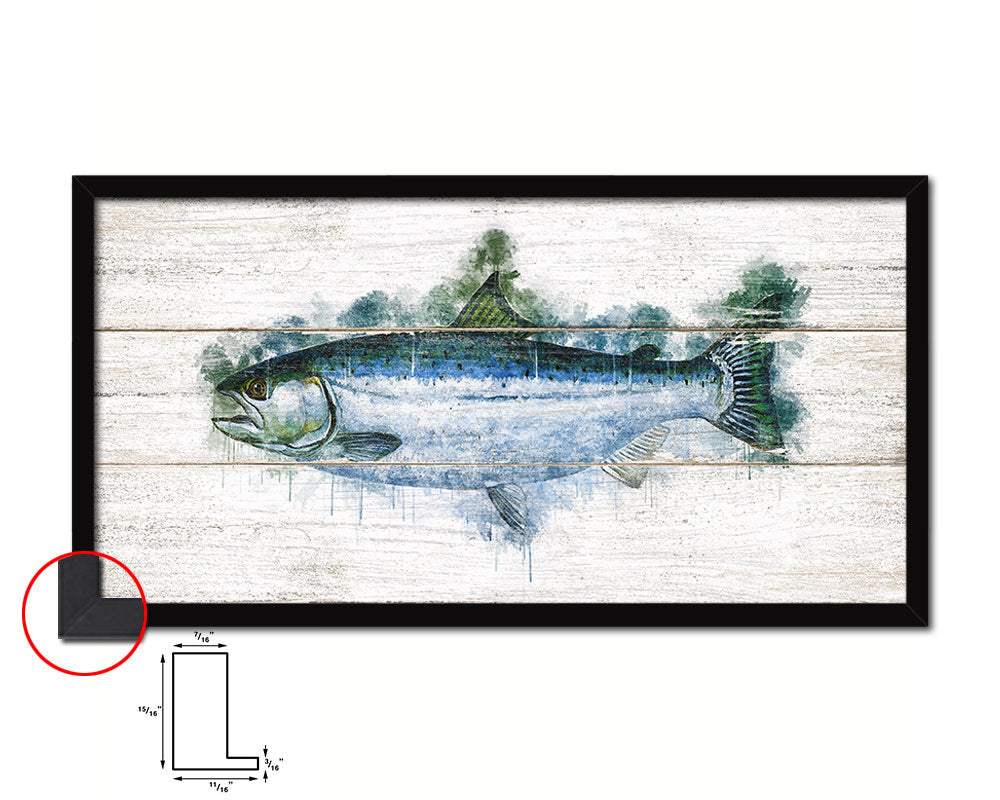 Salmon Fish Art Wood Framed White Wash Restaurant Sushi Wall Decor Gifts, 10" x 20"