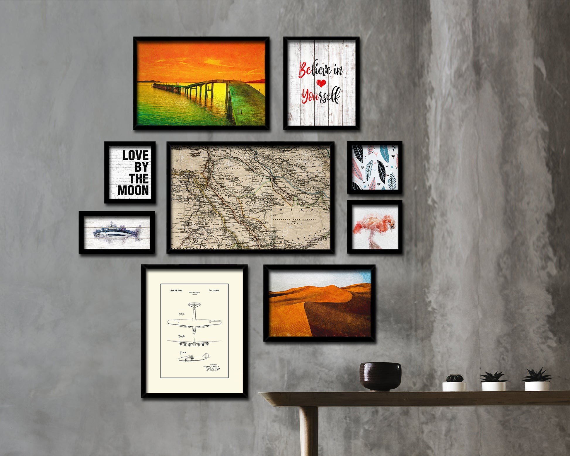 Saudi Arabia Iraq Middle East 1875 Historical Map Framed Print Art Wall Decor Gifts