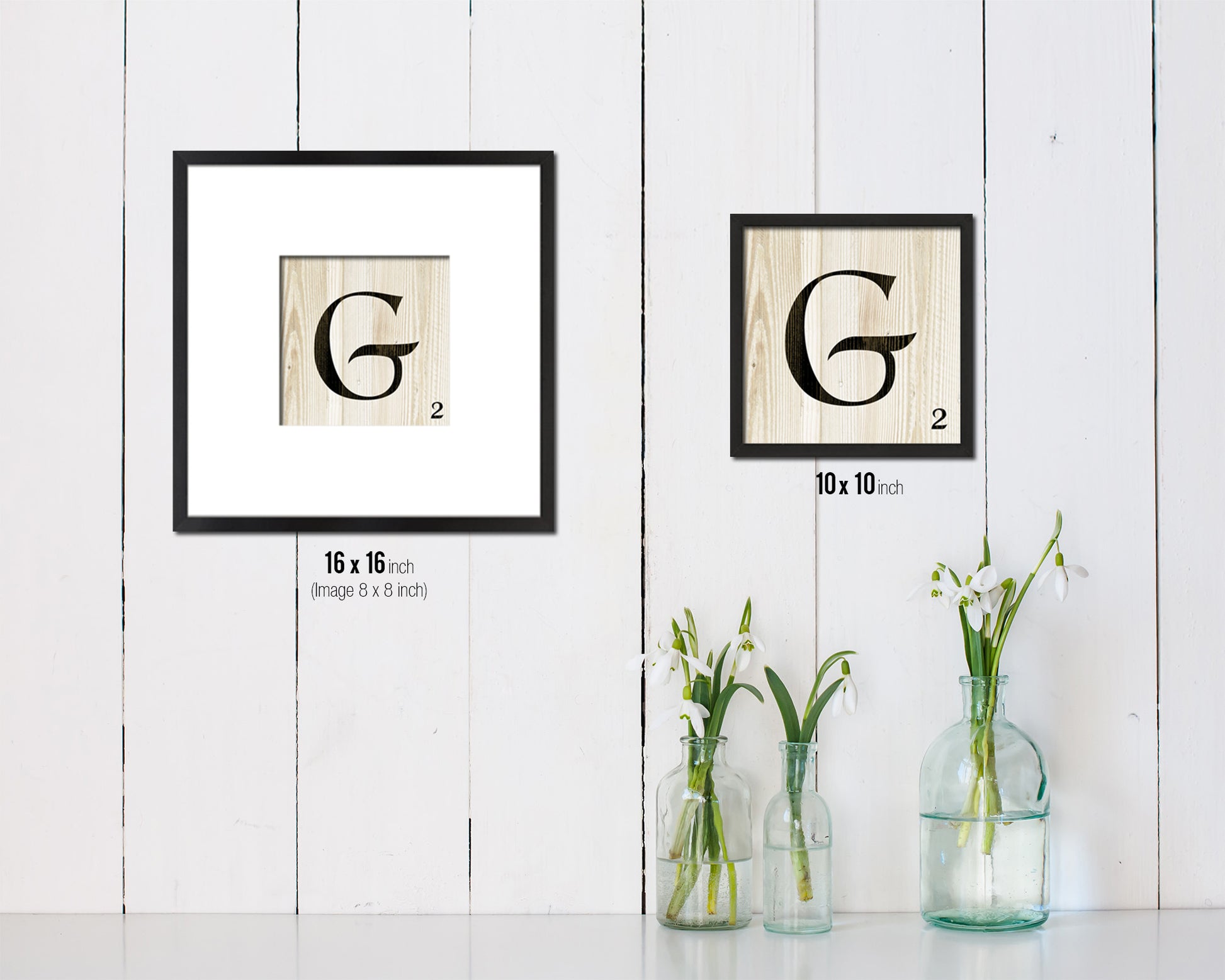 Letter G Custom Scrabble Sign Framed Prints Wall Art Decor Gifts, Wood