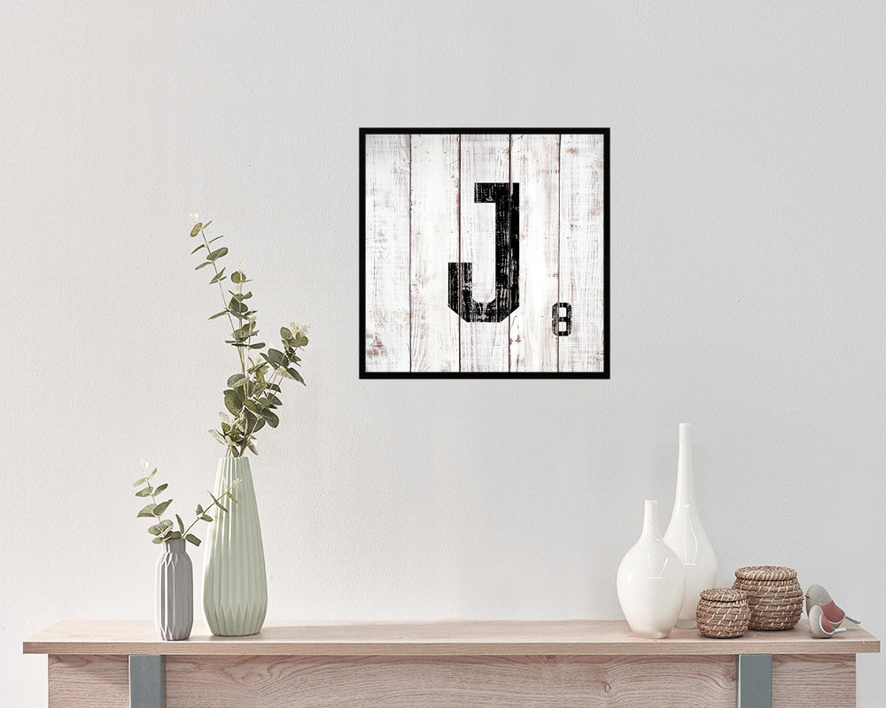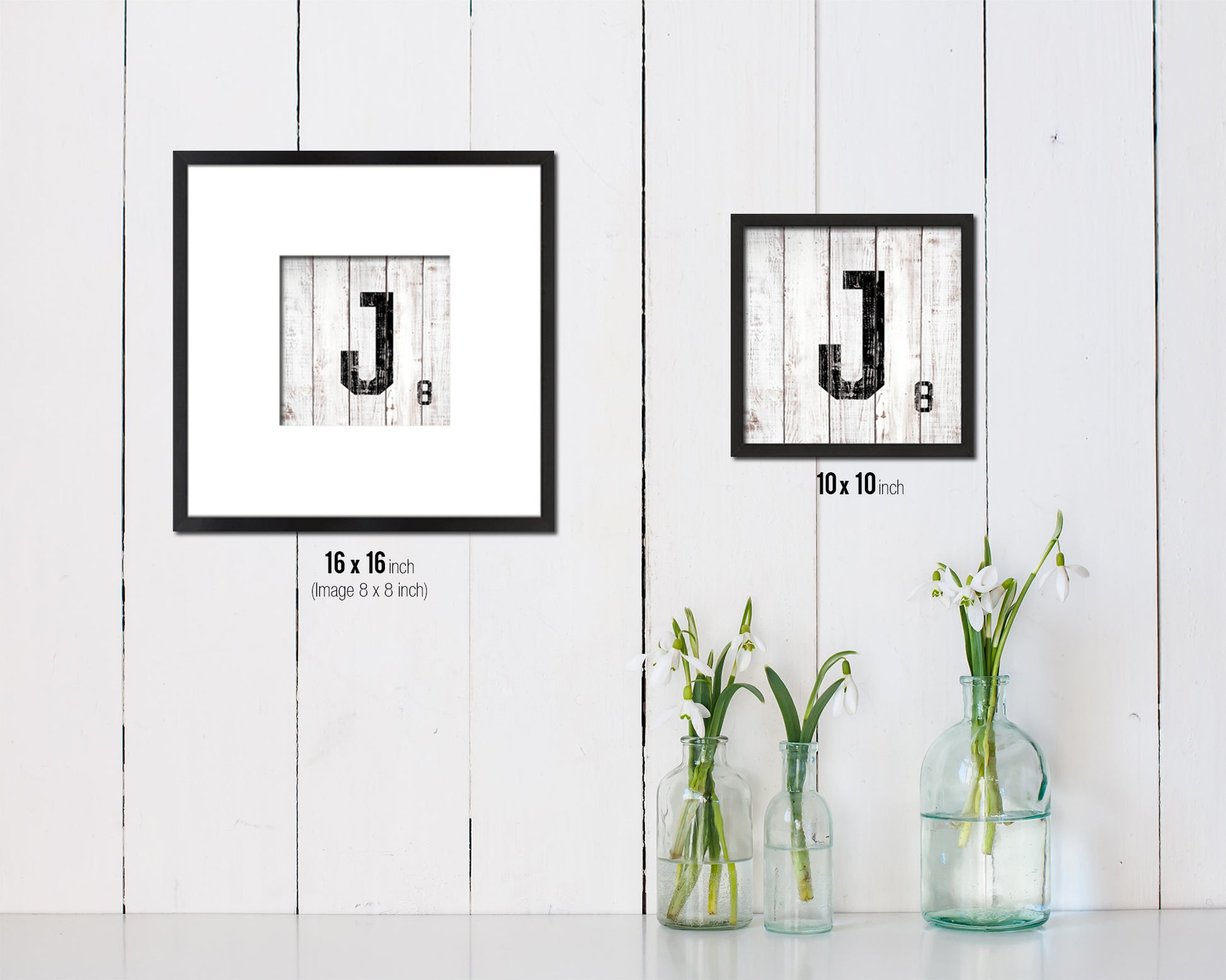 Letter J Custom Scrabble Sign Framed Prints Wall Art Decor Gifts, White Wash Wood