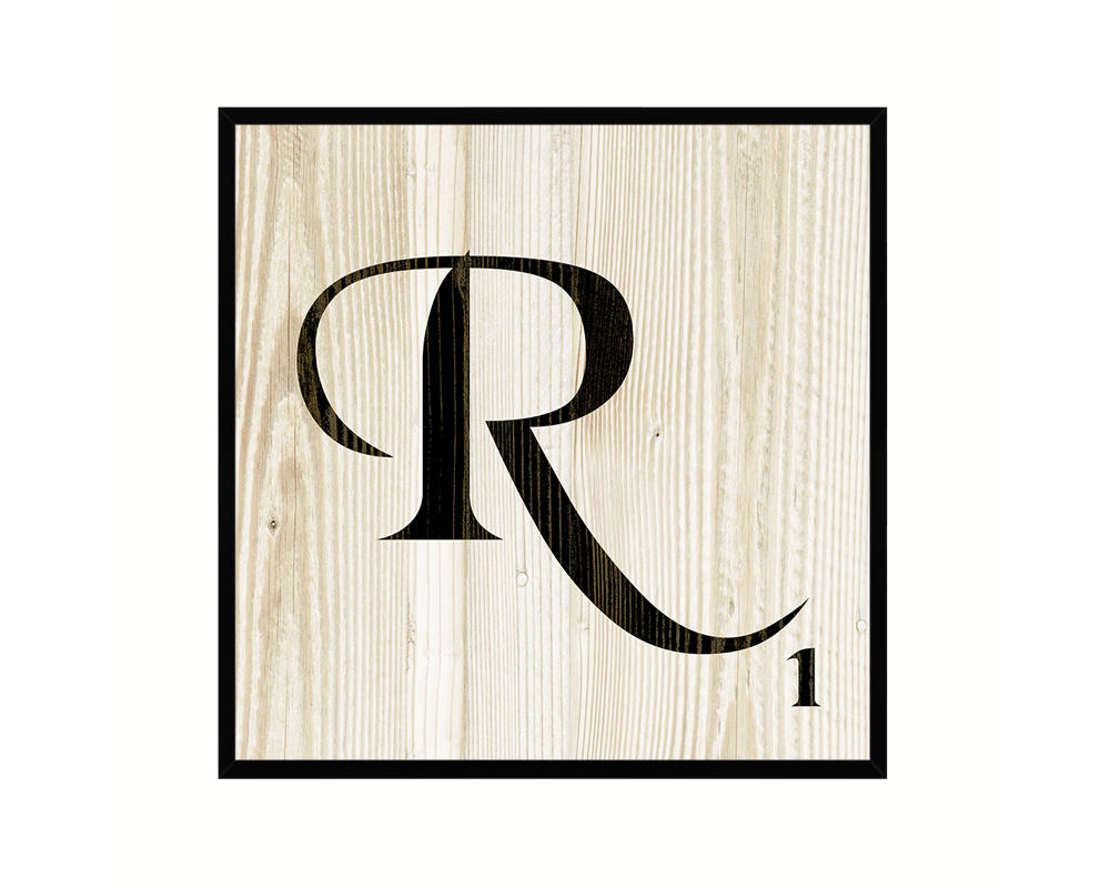 Letter R Custom Scrabble Sign Framed Prints Wall Art Decor Gifts, Wood