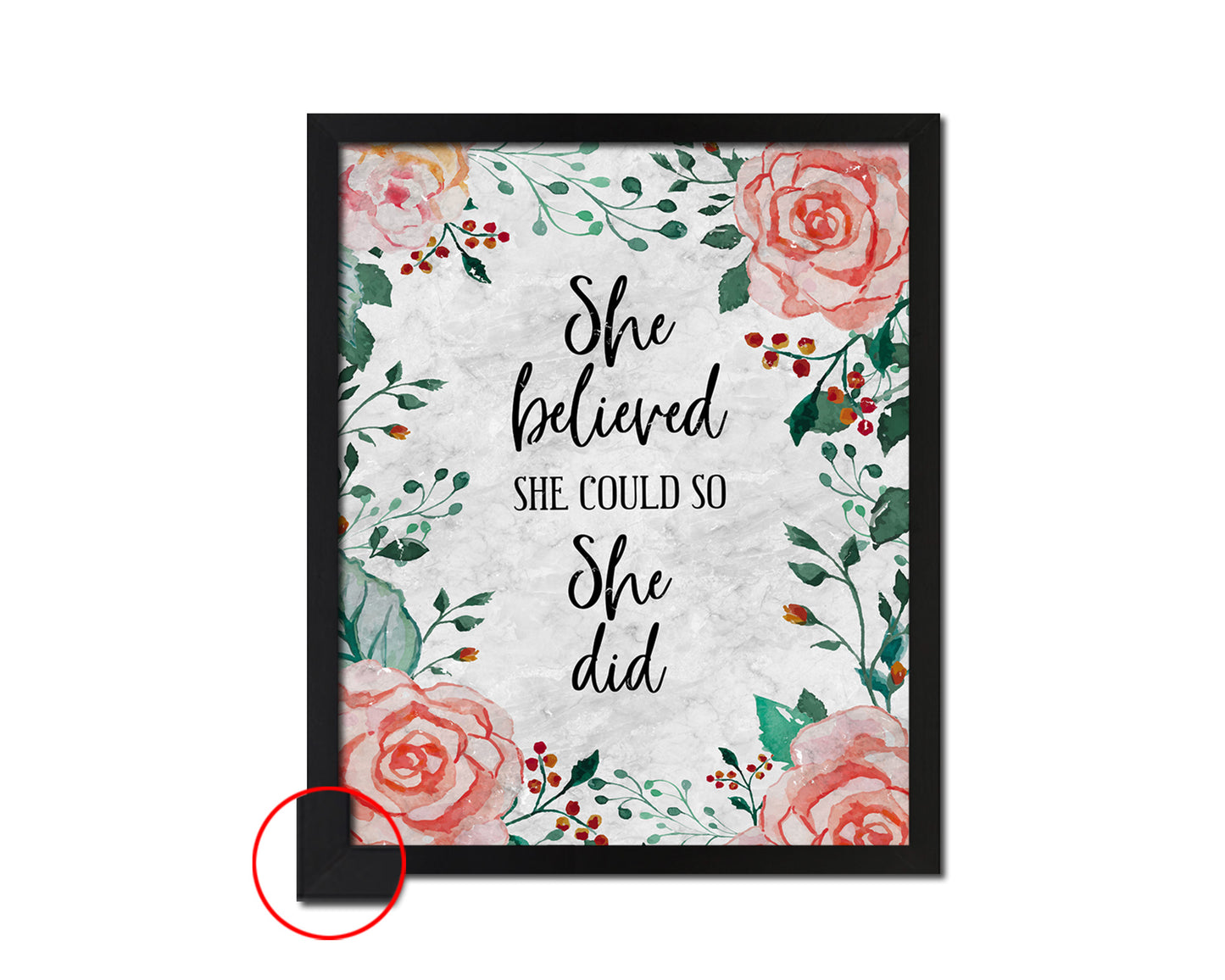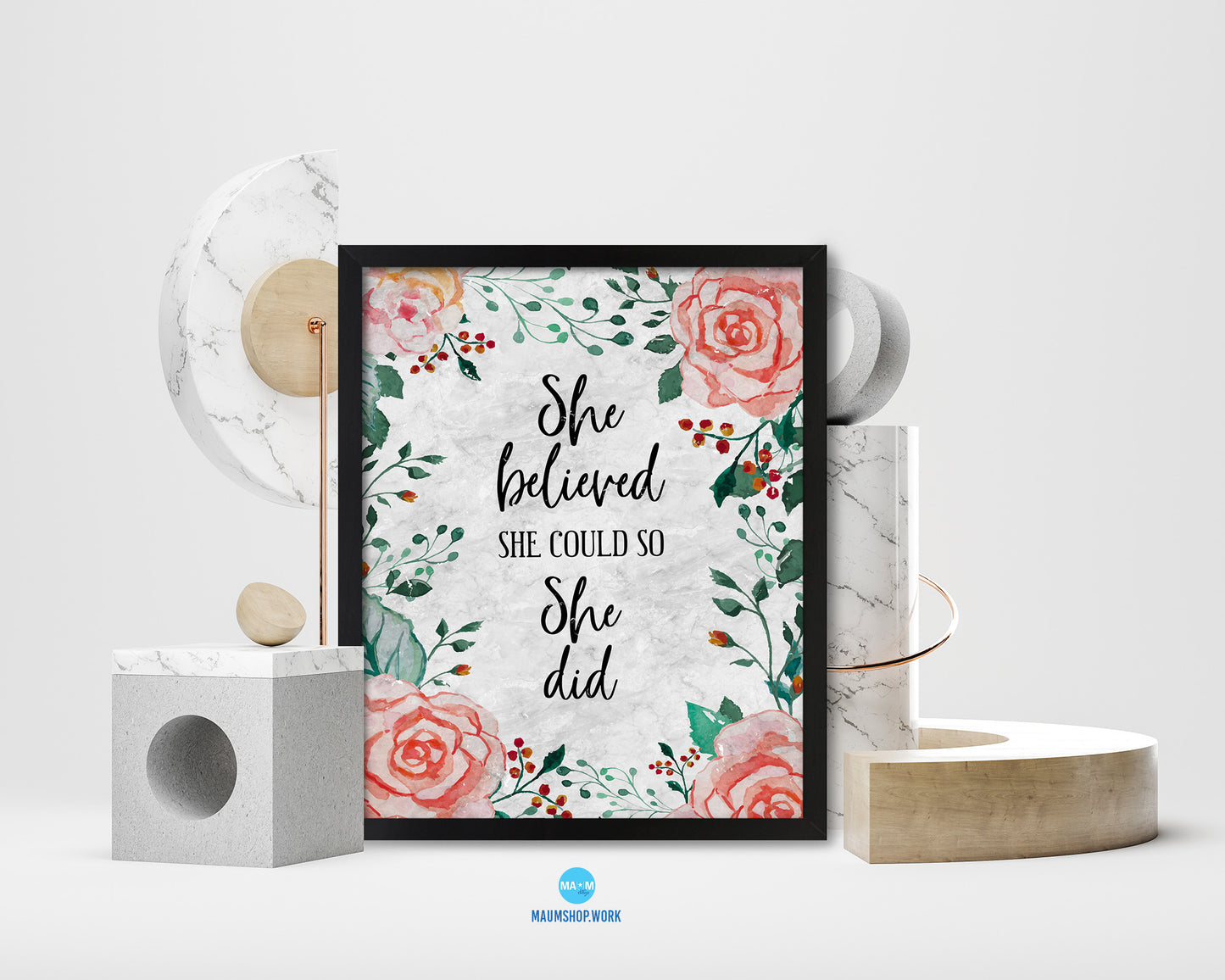 She believed she could so she did Motivational Quote Framed Print Wall Art Decor Gifts
