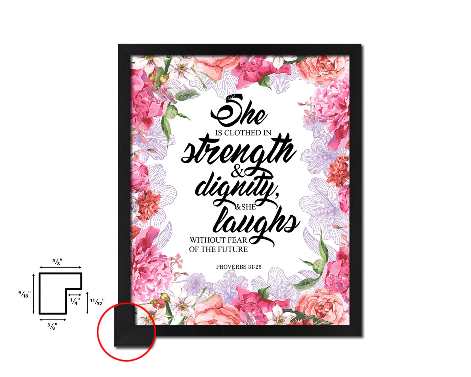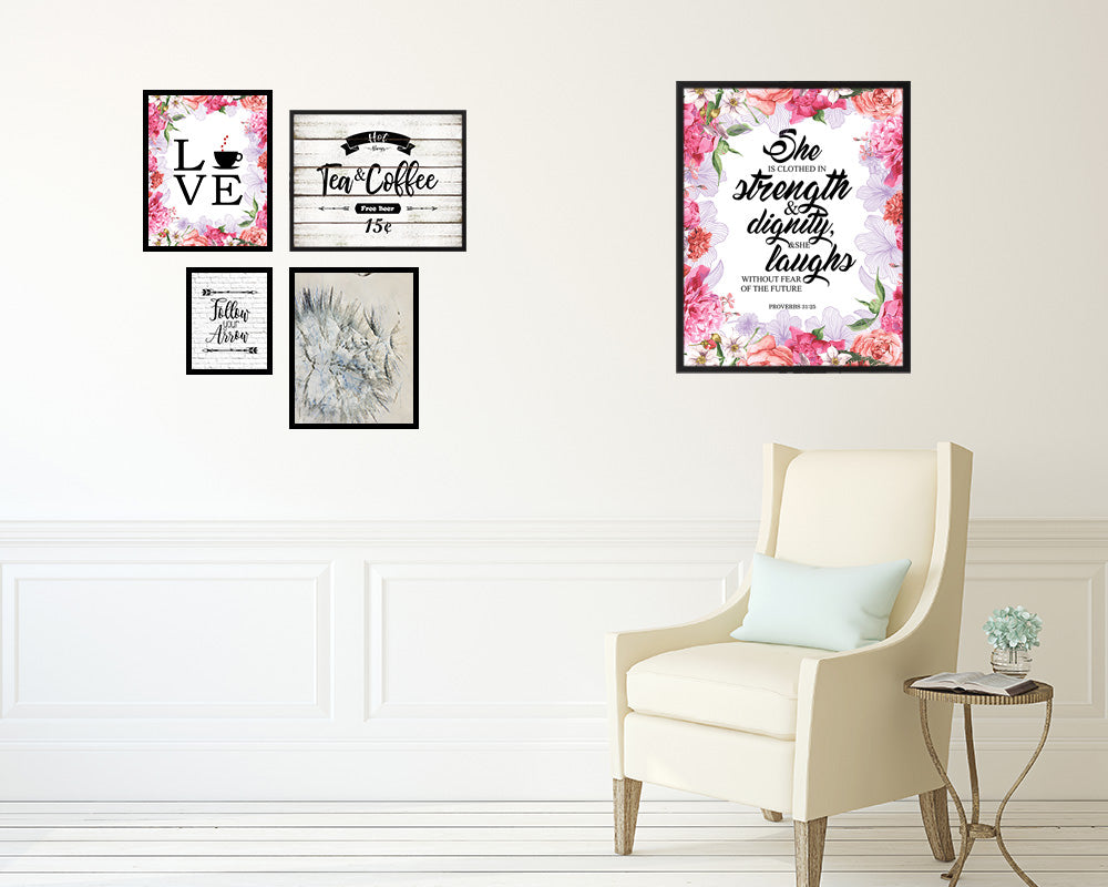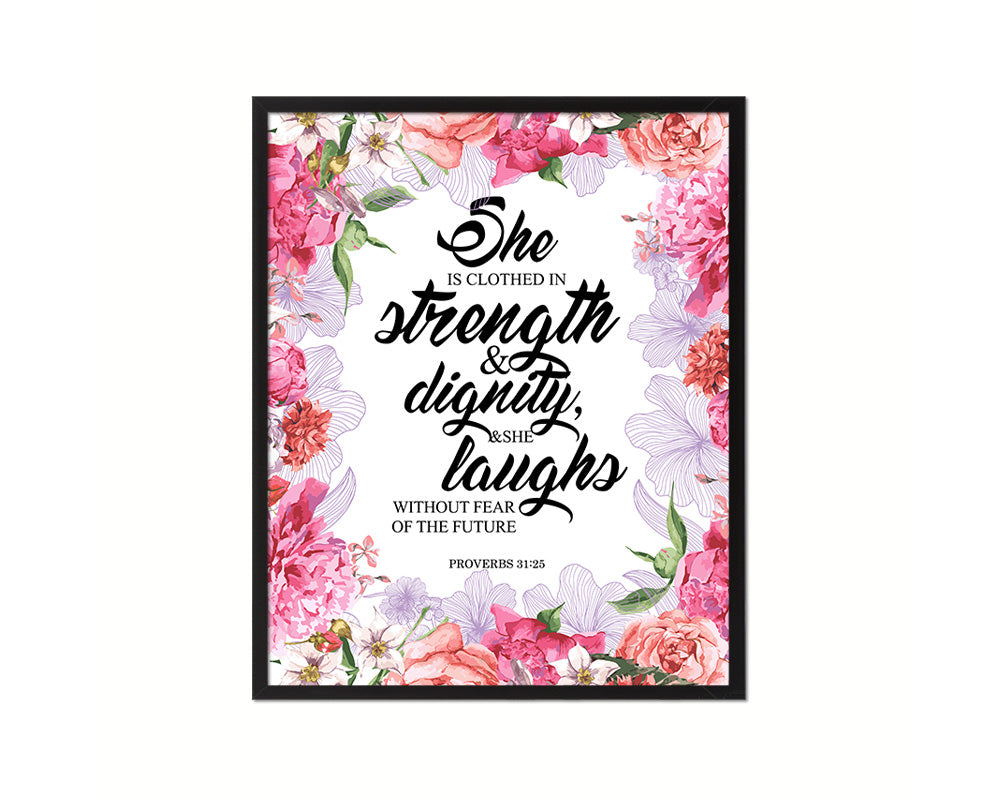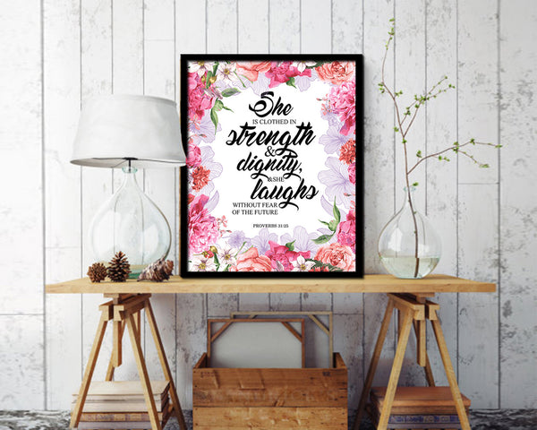 She is clothed in strength, Proverbs 31:25 Quote Framed Print Home Decor Wall Art Gifts