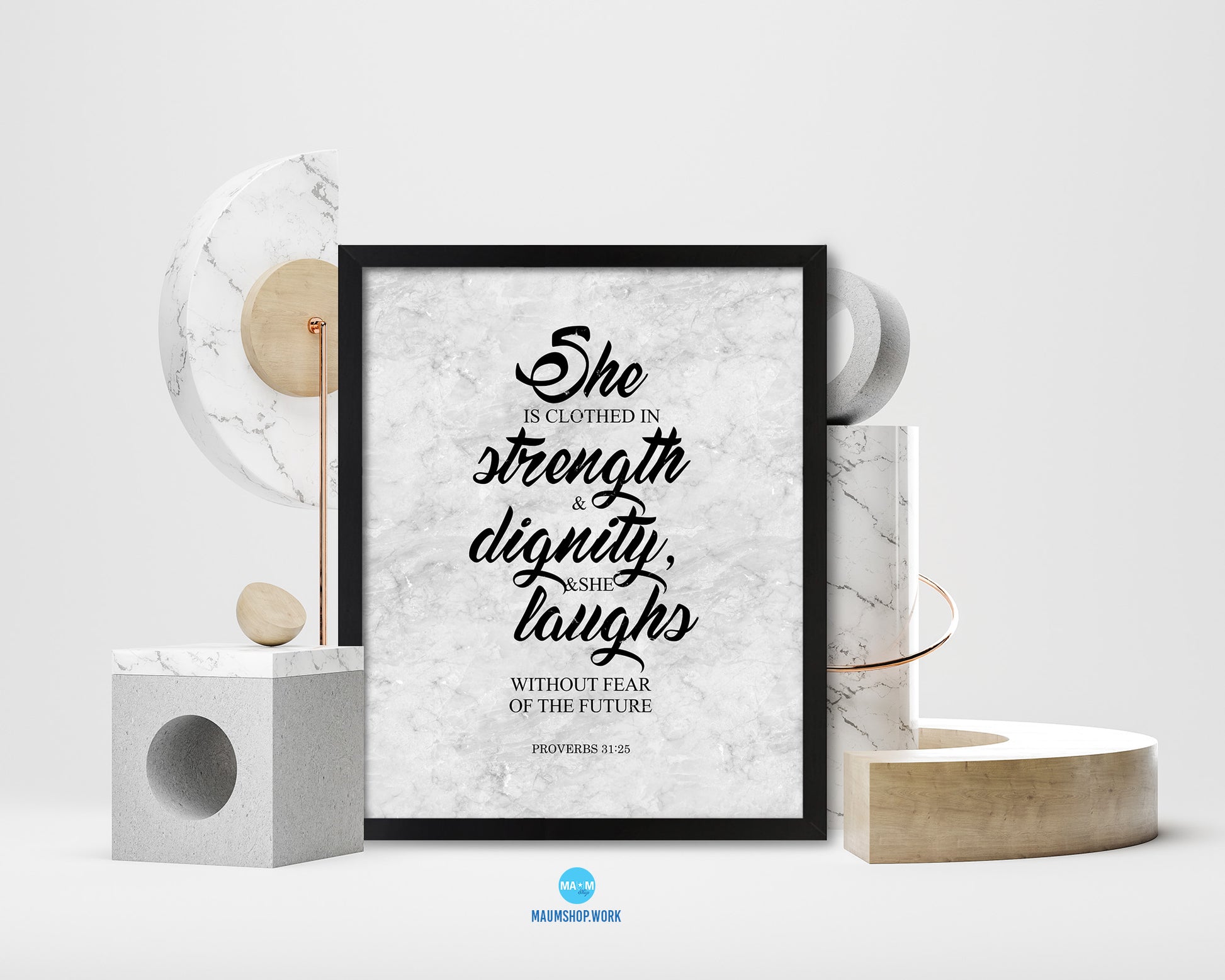 She is clothed in strength, Proverbs 31:25 Bible Scripture Verse Framed Print Wall Art Decor Gifts