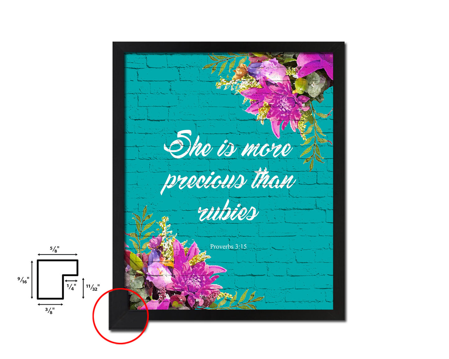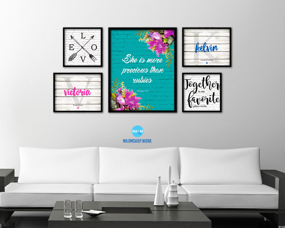 She is more precious than rubies, Proverbs 3:5 Quote Framed Print Home Decor Wall Art Gifts
