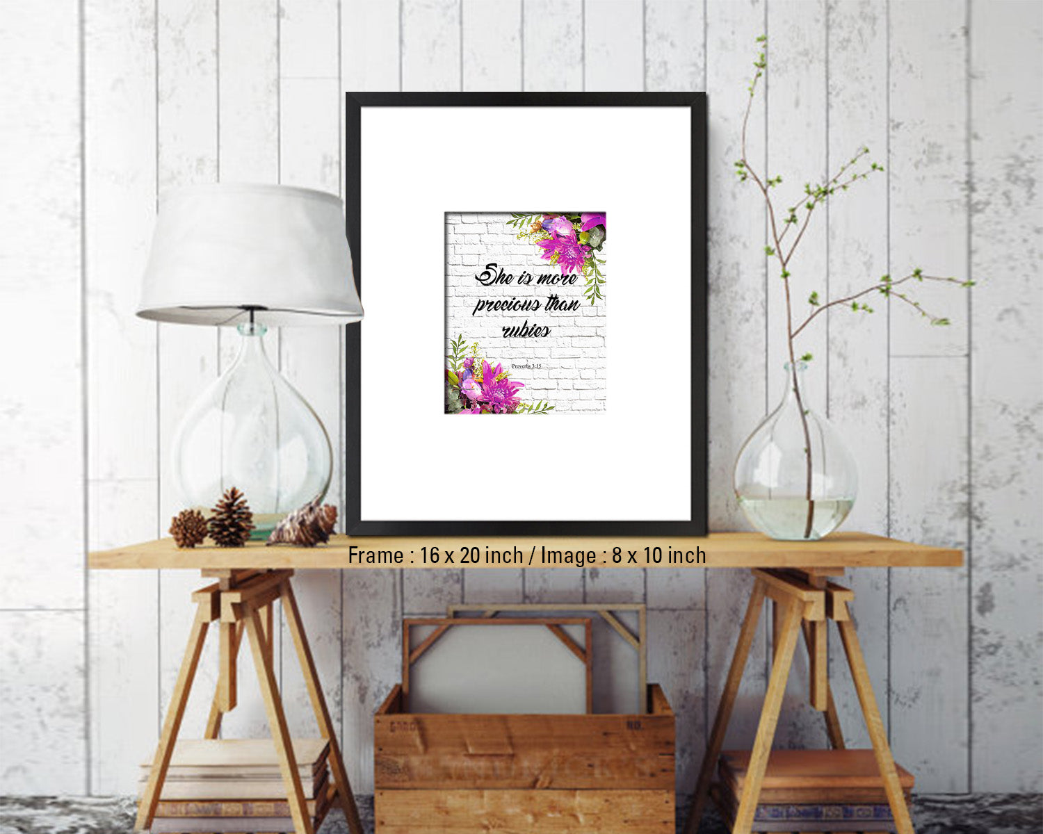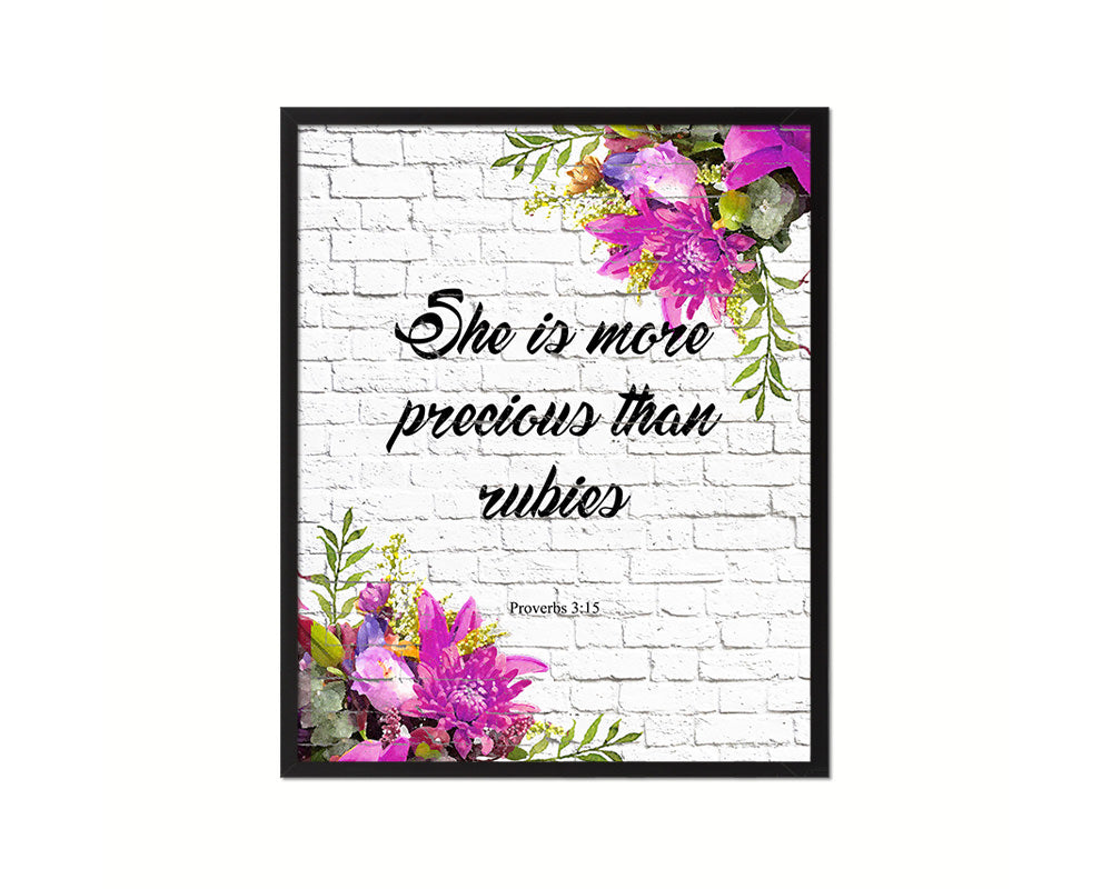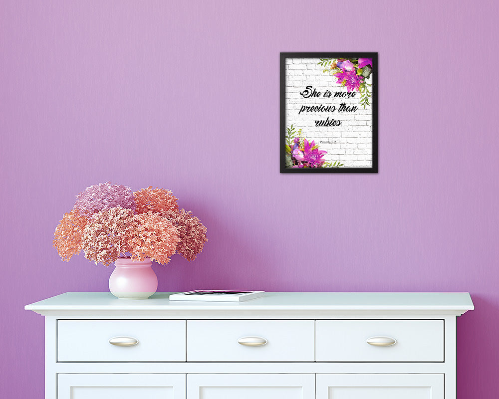 She is more precious than rubies, Proverbs 3:5 Quote Framed Print Home Decor Wall Art Gifts