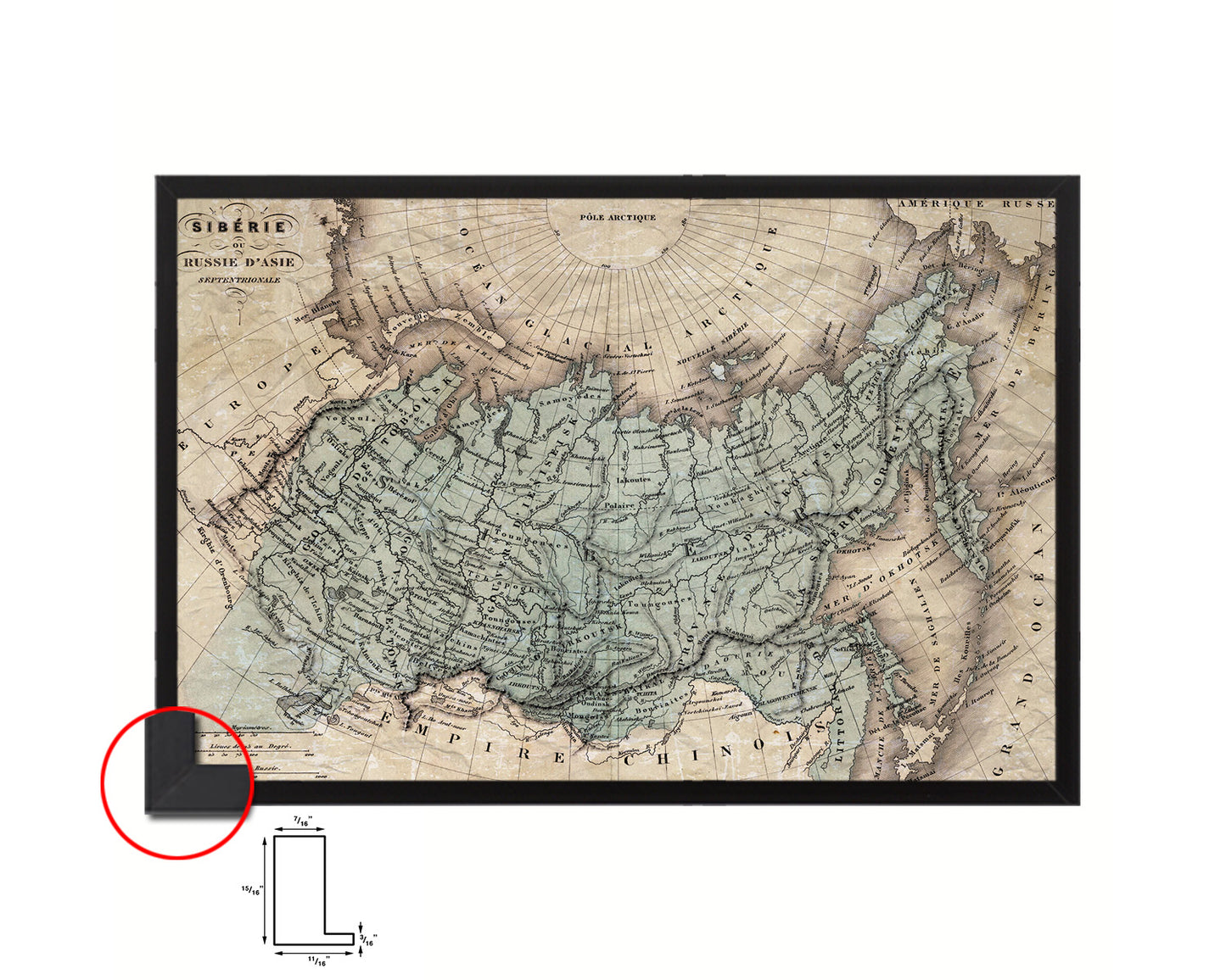Siberia Russia 1870 Historical Map Framed Print Art Wall Decor Gifts