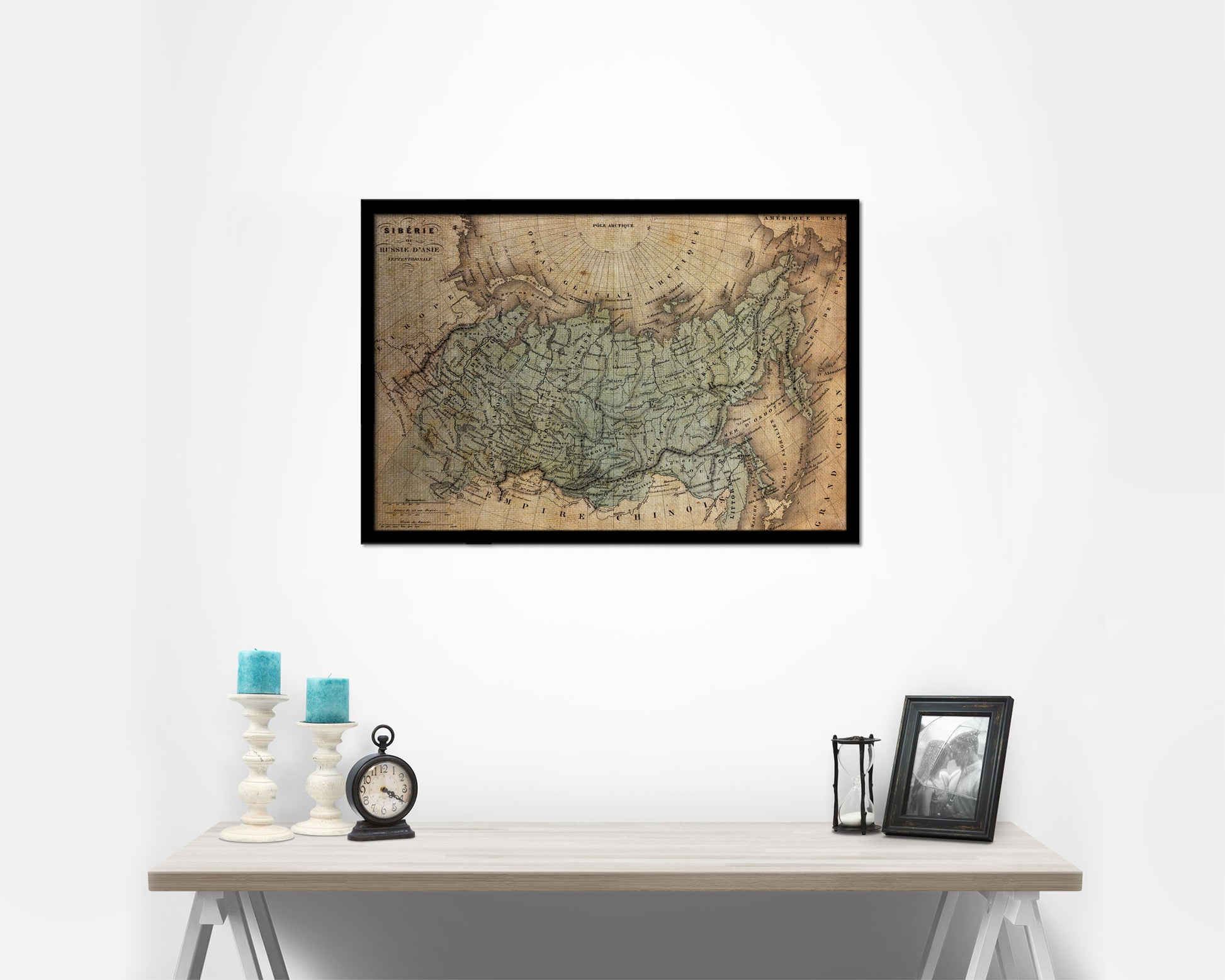 Siberia Russia 1870 Vintage Map Framed Print Art Wall Decor Gifts