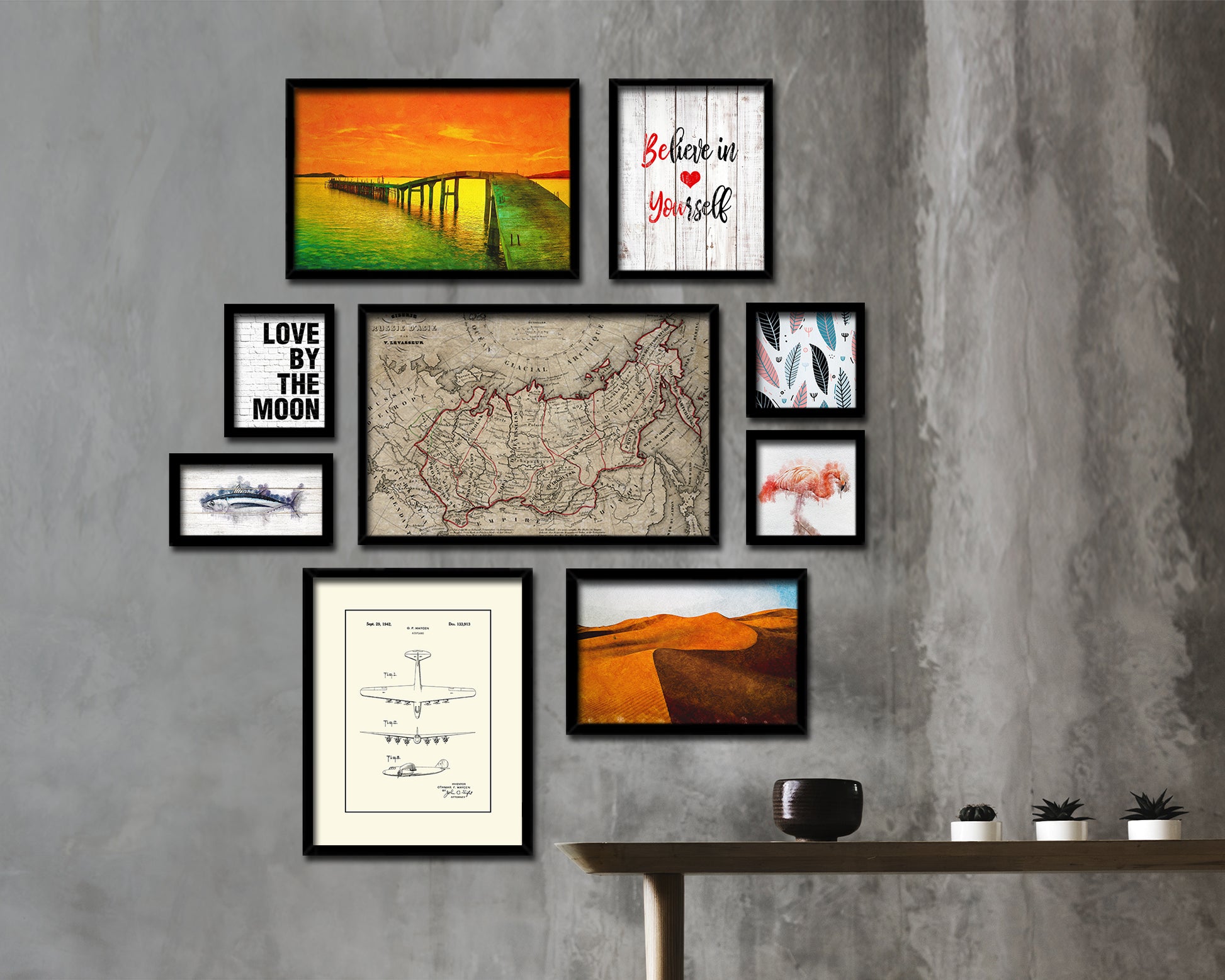 Siberia Russia Historical Map Framed Print Art Wall Decor Gifts