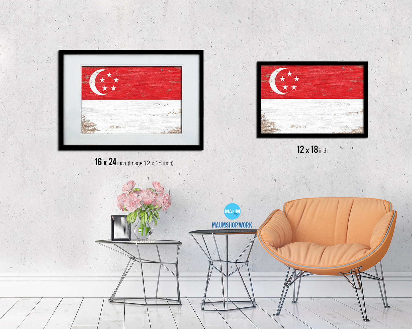 Singapore Shabby Chic Country Flag Wood Framed Print Wall Art Decor Gifts