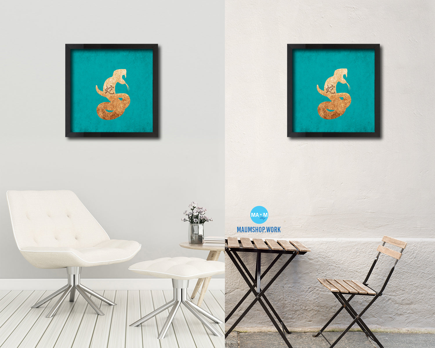 Snake Chinese Zodiac Character Wood Framed Print Wall Art Decor Gifts, Aqua